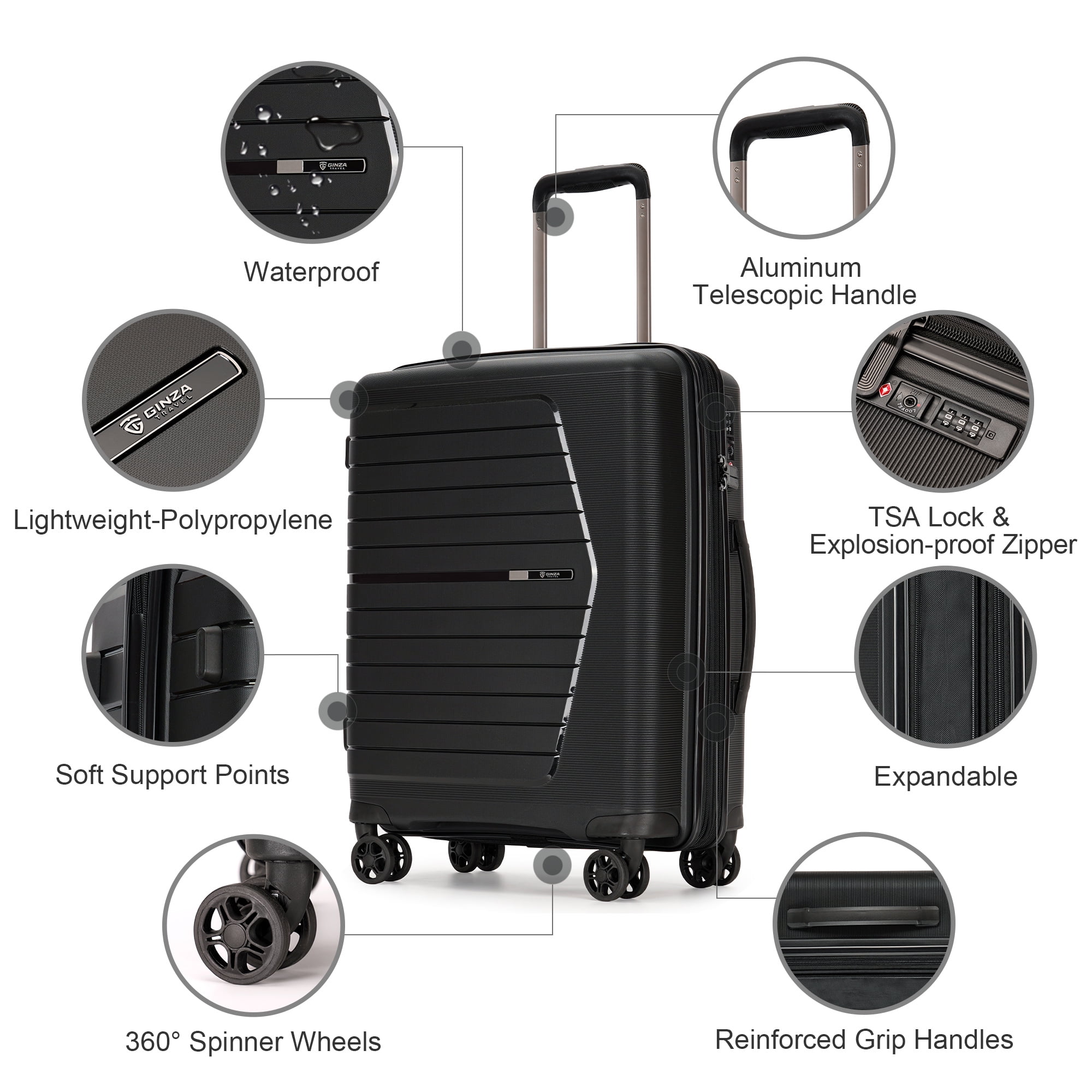 Ginza Travel 3-piece suitcase is committed to creating a suitcase that satisfies customers and makes the journey easy and pleasant. We provide high-quality and fashionable luggage packages for your business travel, holiday travel and outdoor travel, such as hardside luggage, expandable luggage, children’s luggage, boarding case, etc. A variety of luggage options make us the right choice for customers to travel. At the same time, in order to better meet the needs, our luggage is also constantly improving and upgrading. We hope that one day you can see our luggage at the airport, on the subway and anywhere.