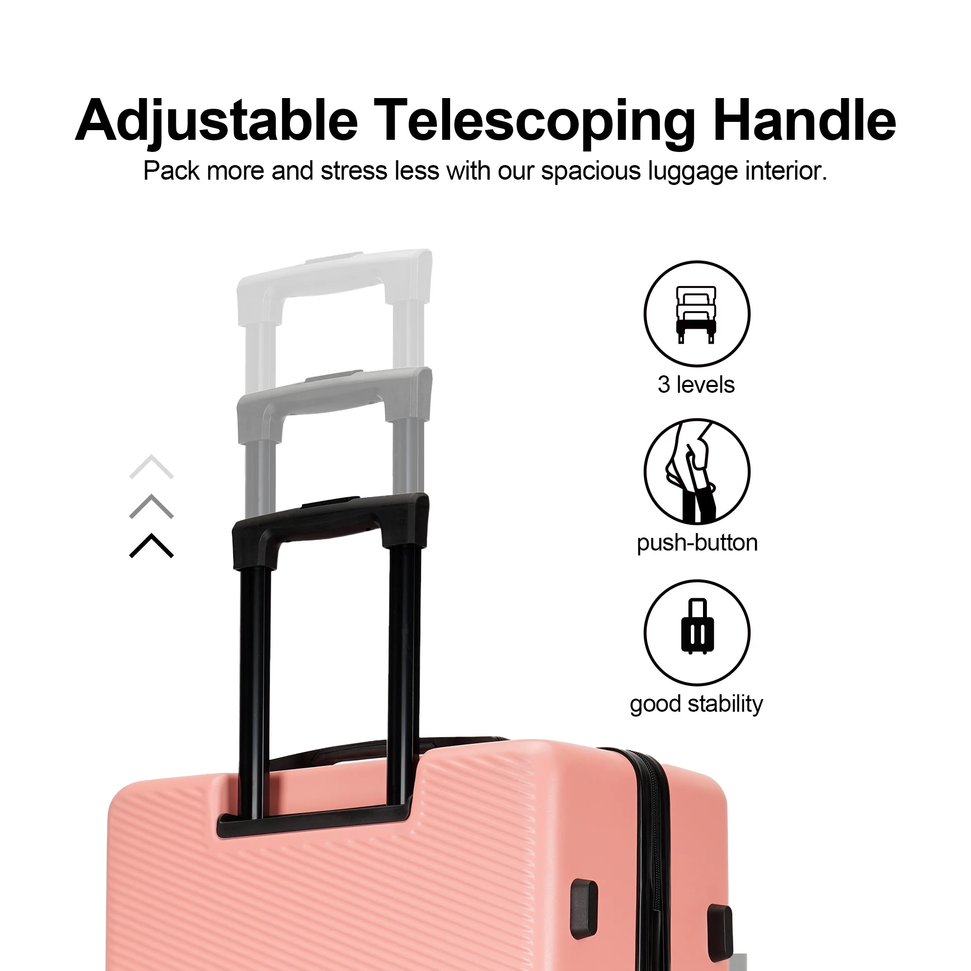 Ginza Travel is committed to providing high quality and hardside luggage sets and Satisfy customers service.Durable lightweight, and water-resistant ABS hardshell, adjust freely handle, smooth 360°double spinner wheels, large storage space design help you bring easy, convenient and happy travel life. And 3 piece hard shell luggage sets include a 20″ carry on luggage, a 24″ and a 28″ checked suitcase which are designed to satisfy your different travel: business trips, family travels etc., is the excellent companion for short-term or extended trip. 20-inch meets all standard requirements for carry-ons on both international and U.S. based flights. The 24 and 28 inch suitcase are best for check in.