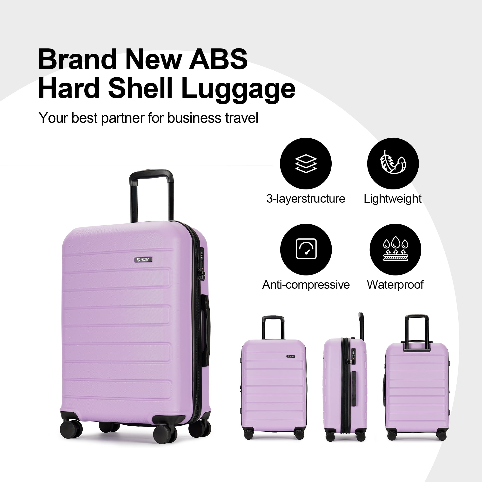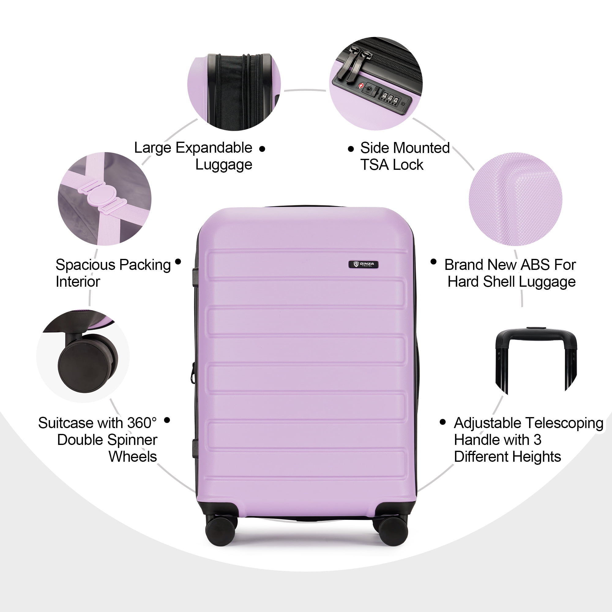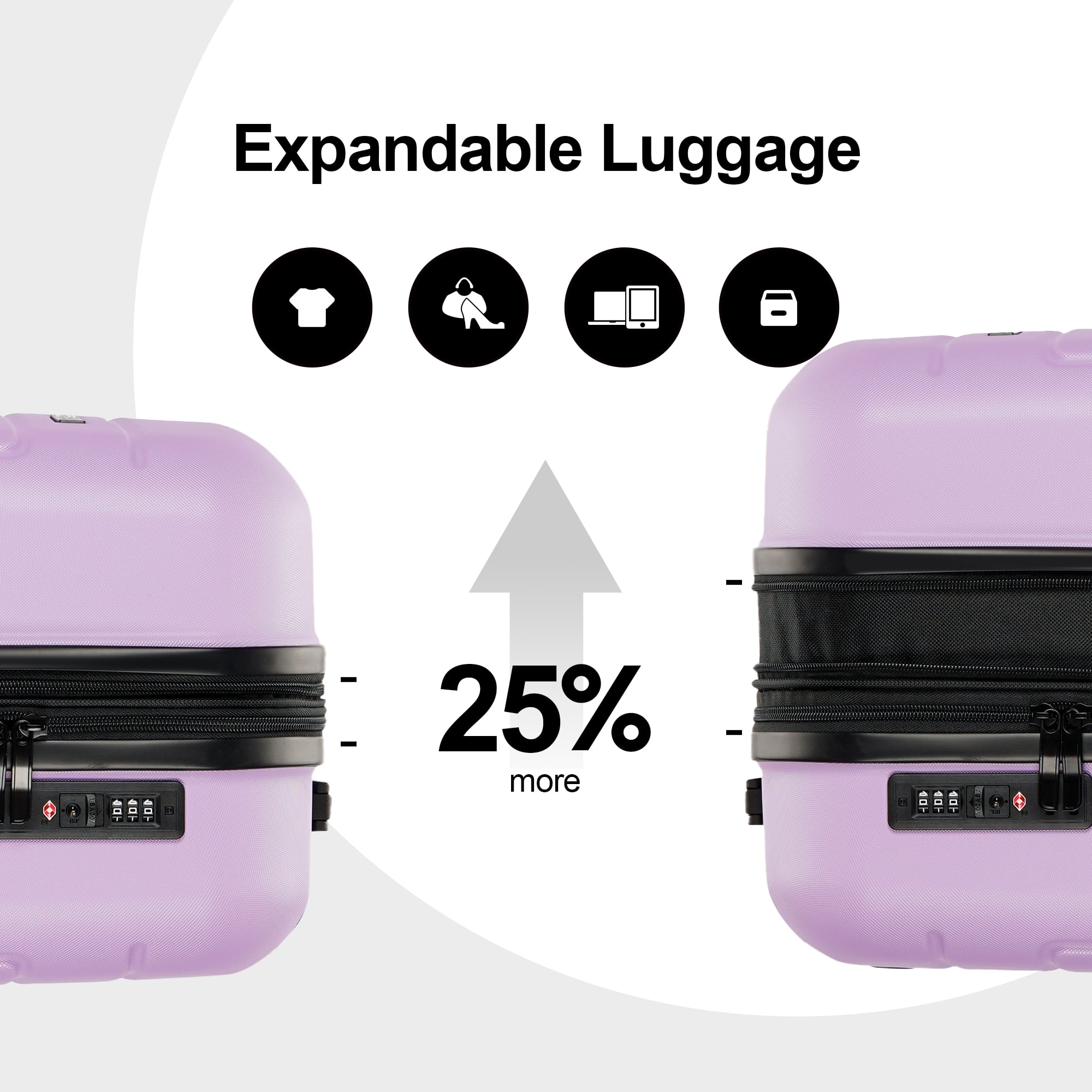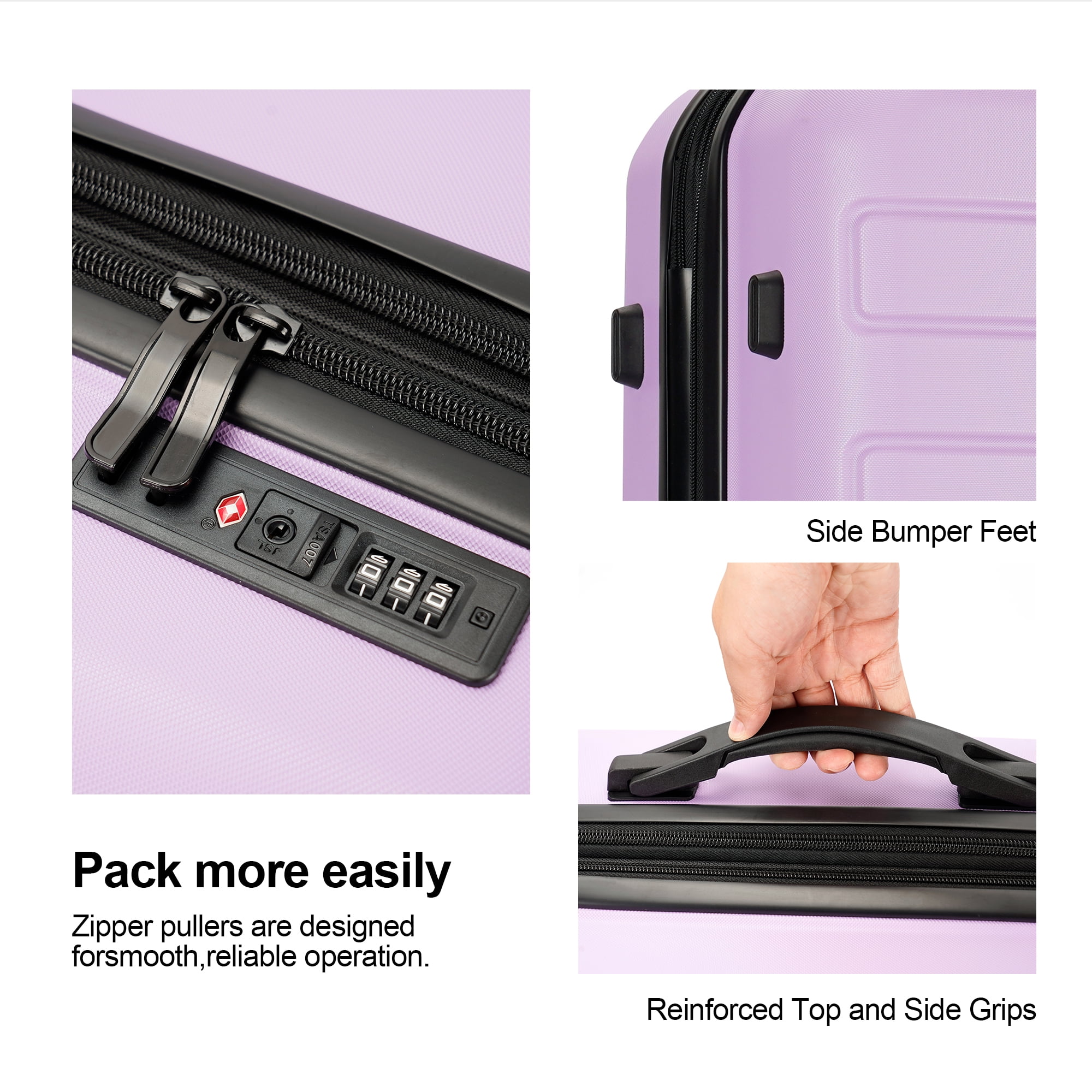 20-inch Carry On Expandable Luggage: 14(L) * 9(W) * 23(H) INCH, Weight: 9.4 Lbs, Capacity: 40L (can expand 30% to 52L) 24-inch Checked Expandable Luggage: 17(L) * 11(W) * 26(H) INCH, Weight: 12.5 Lbs, Capacity: 65L (can expand 30% to 85L) 28-inch Large Expandable Checked Luggage: 19(L) * 12(W) * 30(H) INCH, Weight: 14.6 Lbs, Capacity: 100L (can expand 25% to 125L) 【High Quality and Convenient Storage】: Constructed from durable ABS materials for a hard shell, the luggage is lighter, impact-resistant, and features a textured finish to prevent scratches, maintaining its appearance. The smaller suitcase fits into the larger one for optimized home storage. 【Simplified TSA Lock for Travel Security】: The side-mounted TSA lock allows for easy inspection without damage. Durable zippers provide added protection, while the interior divider and cross straps increase bag stability. 【Full Aluminum Telescopic Handle】: Featuring a three-section telescoping function, the aluminum pull rod handle is ergonomically designed and adjustable to accommodate various heights. 【Silent & Smooth 360 Degree Spinner Wheels】: The 360-degree multi-directional 4 spinner wheels offer effortless mobility. The double wheel design provides durability, stability, and silent movement. 【Spacious & Durable】: Each piece offers a large interior volume for easy packing. The tear-resistant inner lining protects belongings, while added small pockets keep items organized and secure.