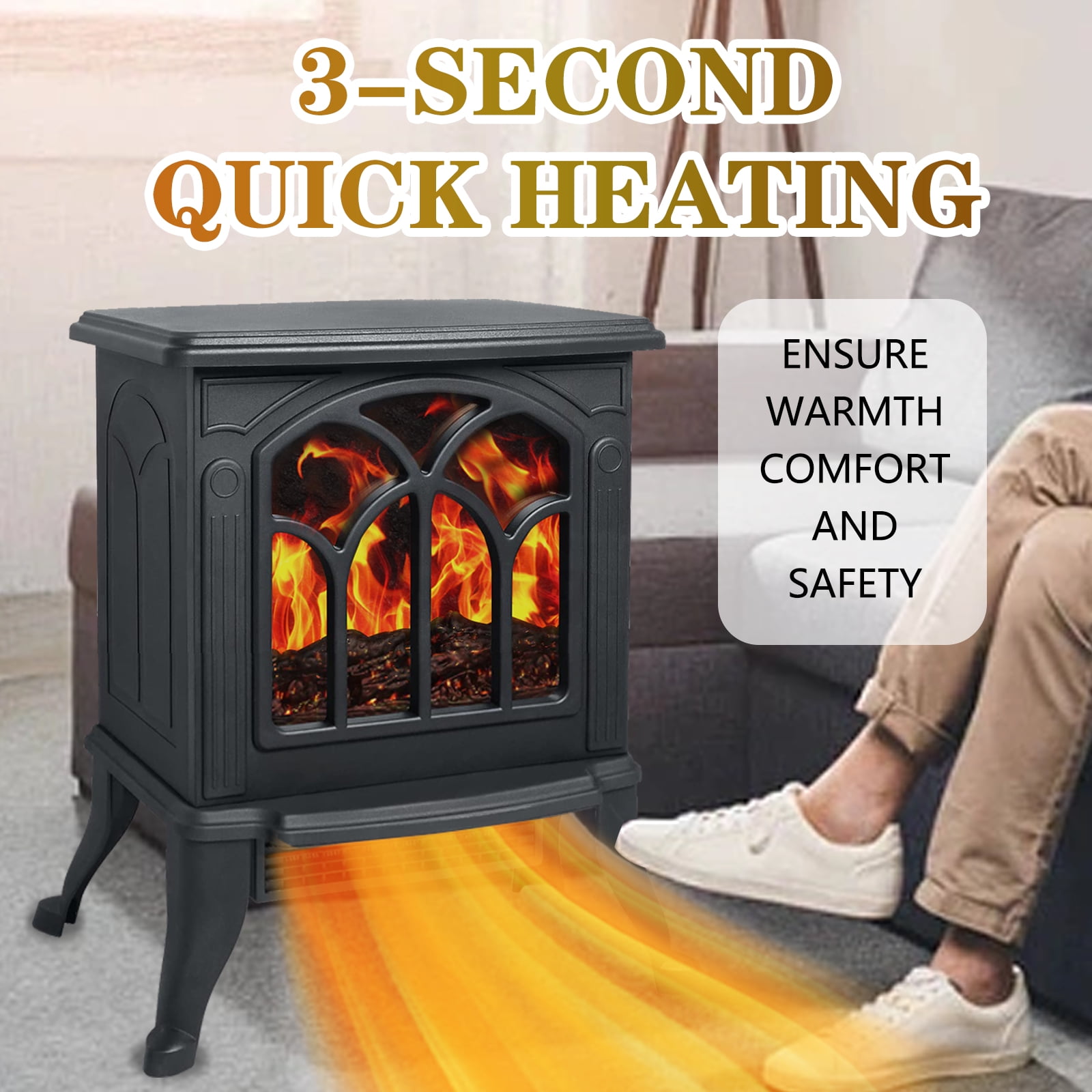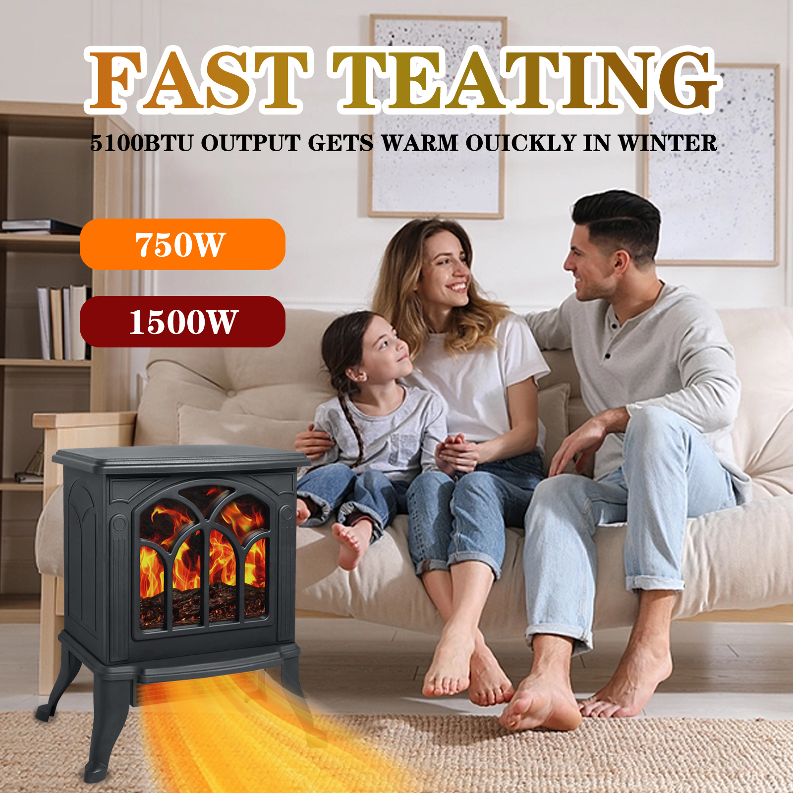 Rapid Infrared Heating: Instant warmth in 3 seconds, gentle humidity. Dual Heat Levels: 750W low, 1500W high heat for customization. Safety & Realistic Flames: Tip-over and overheat protection, adjustable flame intensity, kid-friendly, ultra-quiet.