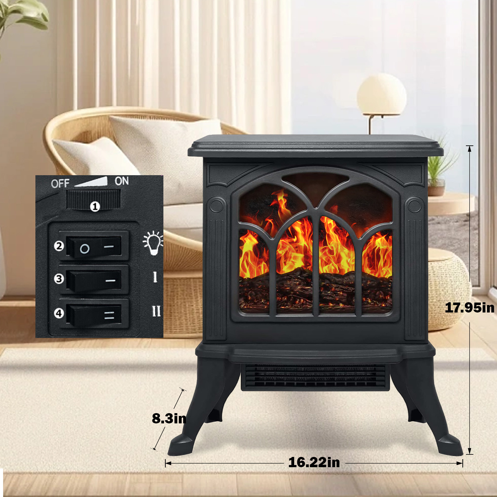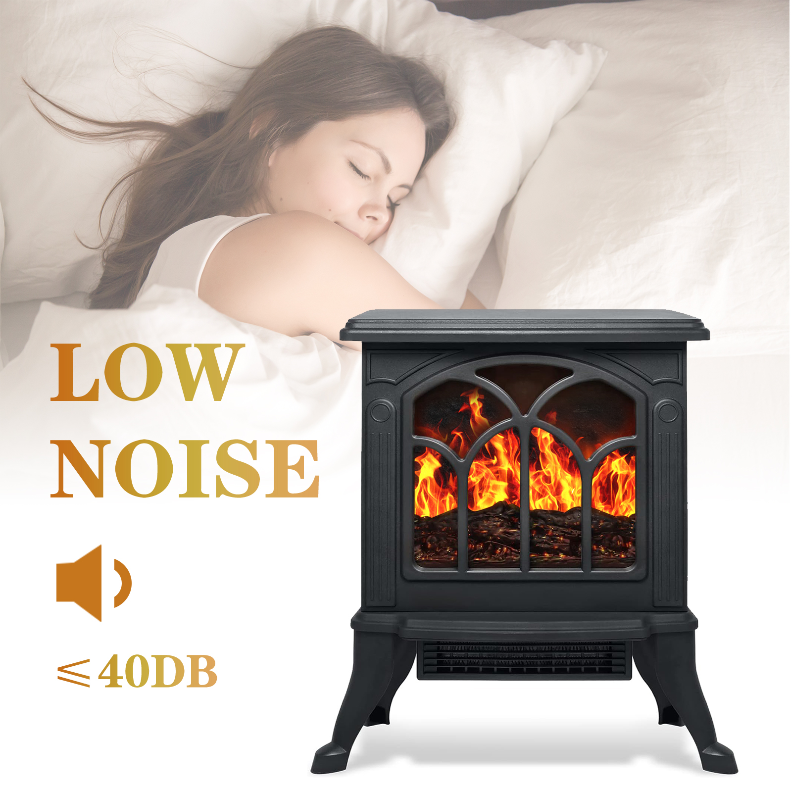 Fast Heating in 3 SECONDS: The infrared fireplace heater utilizes energy-efficient infrared technology to provide instant warmth in just 3 seconds, all without causing a spike in your utility bills. Infrared technology maintains the room’s natural humidity, ensuring a comfortable atmosphere without harsh, dry air. 2 Heat Settings: Our electric fireplace heater offers two heat levels – 750W for low heat and 1500W for high heat. You can easily select the desired heat level to reach your perfect temperature. The heat setting button provides convenient control. Tip Over & Overheating Protection: This large electric fireplace stove comes equipped with a cut-off device, automatically shutting off in the event of a tip-over or overheating. This feature ensures safety, making it kid-friendly and accident-resistant. Adjustable Flame Brightness: With advanced 3D technology, our electric stove replicates the comforting ambiance of a real wood-burning fireplace. The intensity of the flame effect can be easily adjusted with the spin button, providing a customizable and realistic experience. Ultra Quiet & Safe: The infrared fireplace heater not only offers efficient heating but also creates a quiet and comfortable space. Its low noise output won’t disturb you while you rest, study, work, sleep, or engage in other activities.