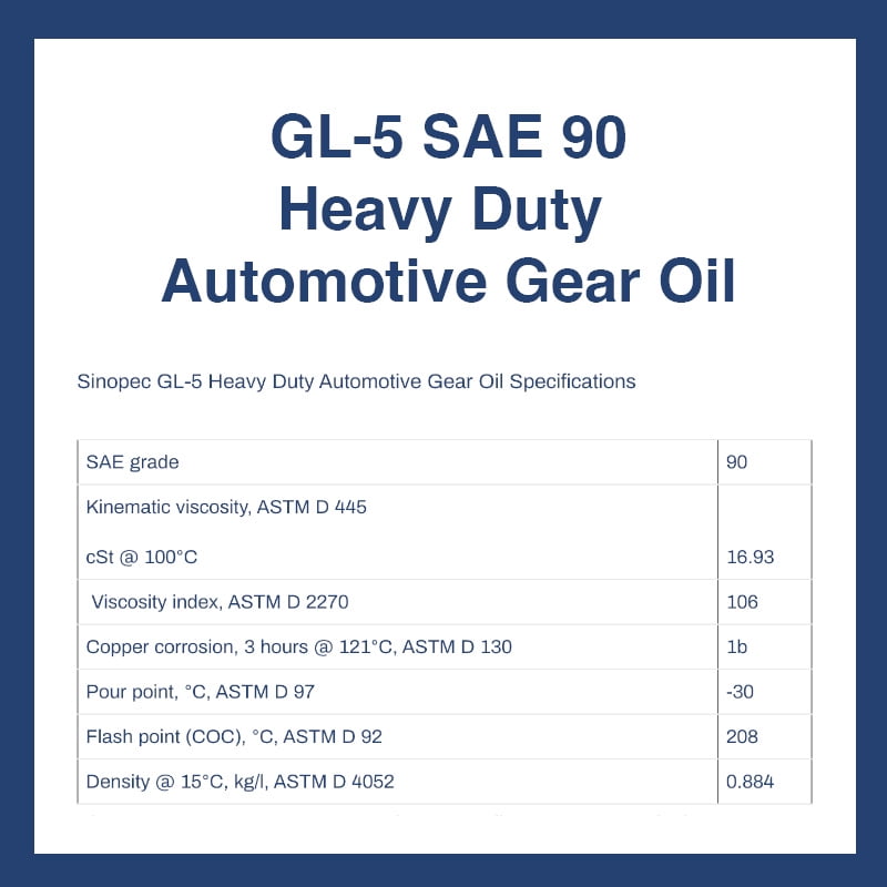 | Model | GL-5 SAE 90 Heavy Duty Automotive Gear Oil |