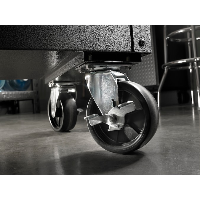 - Four heavy-duty 5-in swivel casters (two locking)