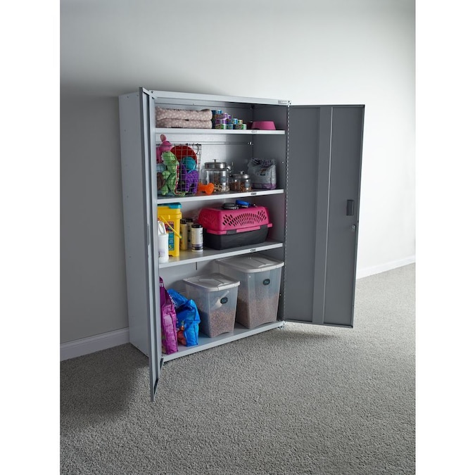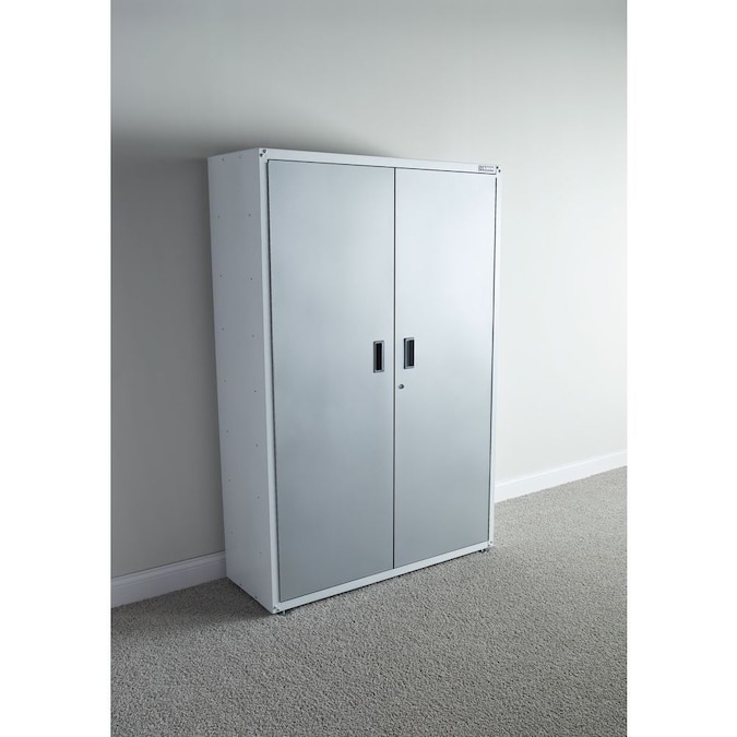 At six-feet tall, 4-feet wide and one-and-a-half feet deep, the Ready-to-Assemble Extra Large GearBox accommodates supplies of various sizes. Store four levels of gardening tools, paint supplies or automotive gear in this sturdy storage cabinet. The design makes assembly fast and easy, while an optional Wall Bracket Kit lets you get the cabinet off the floor using Gladiator® Wall Systems. Not compatible with caster kit.