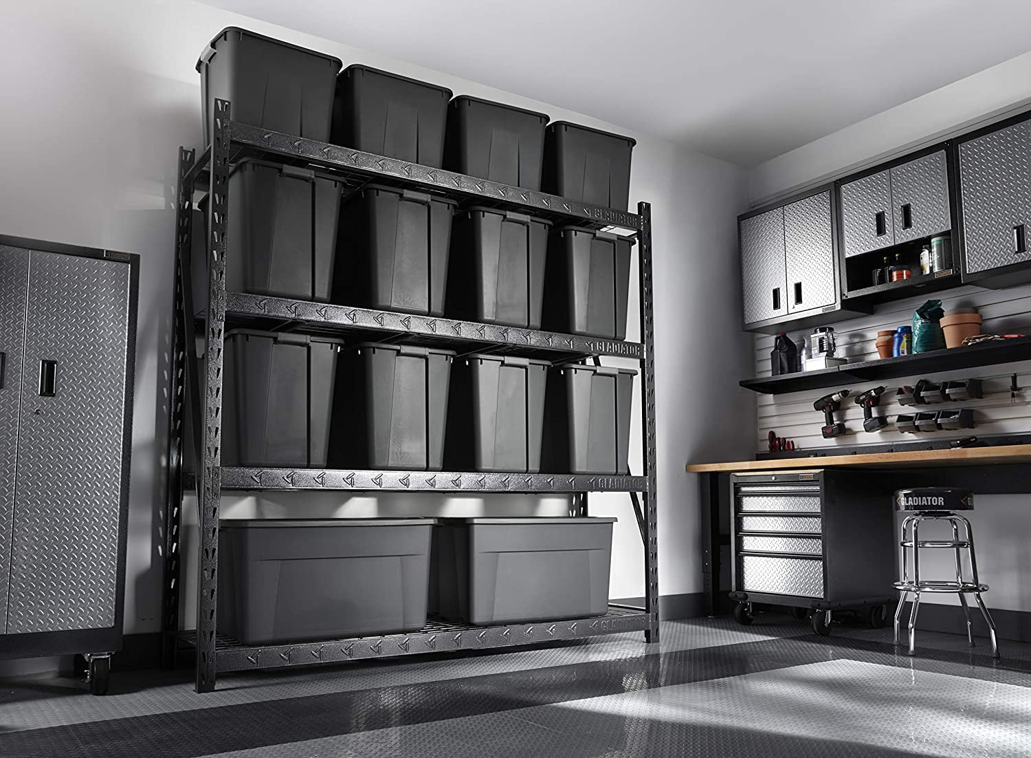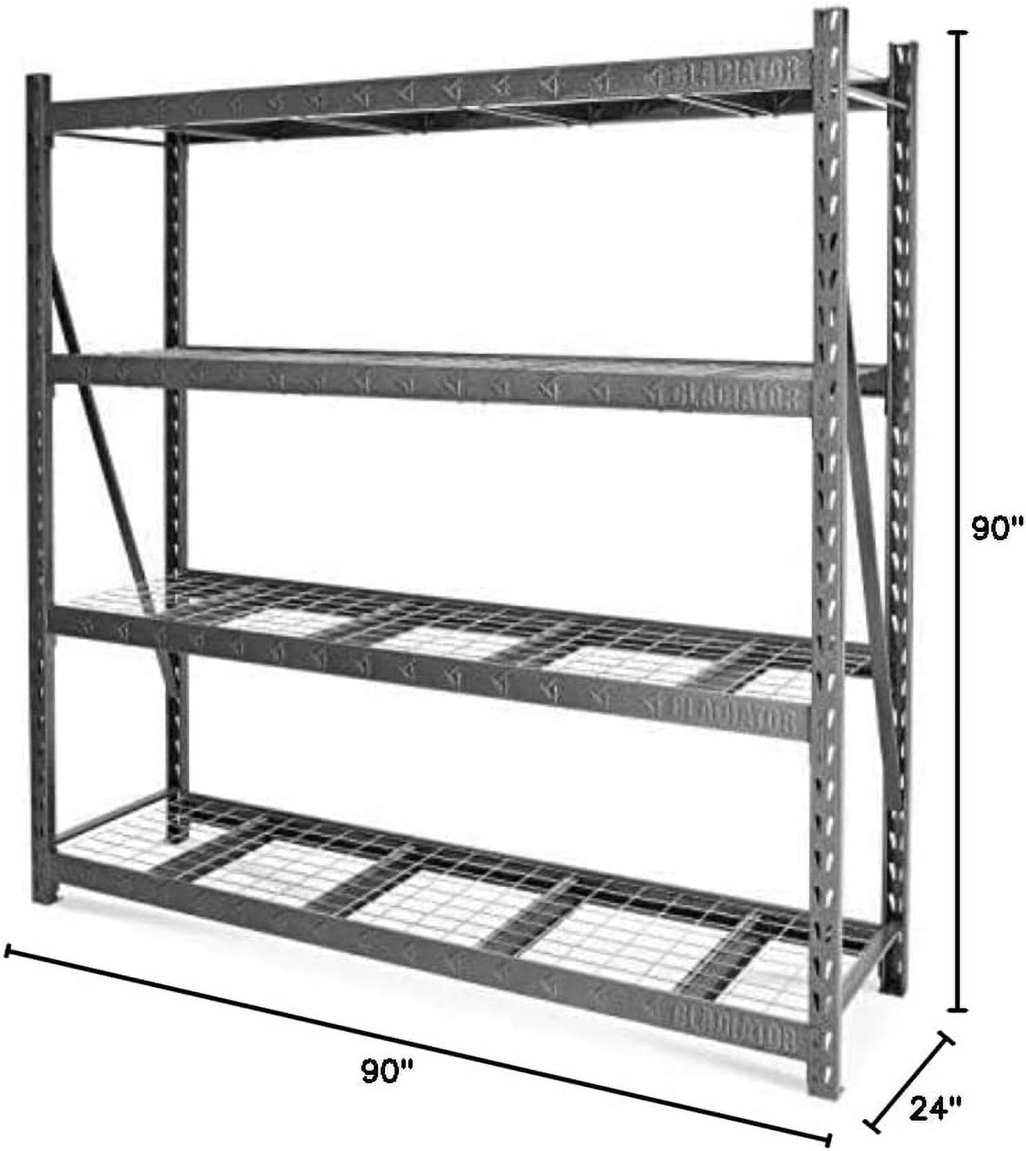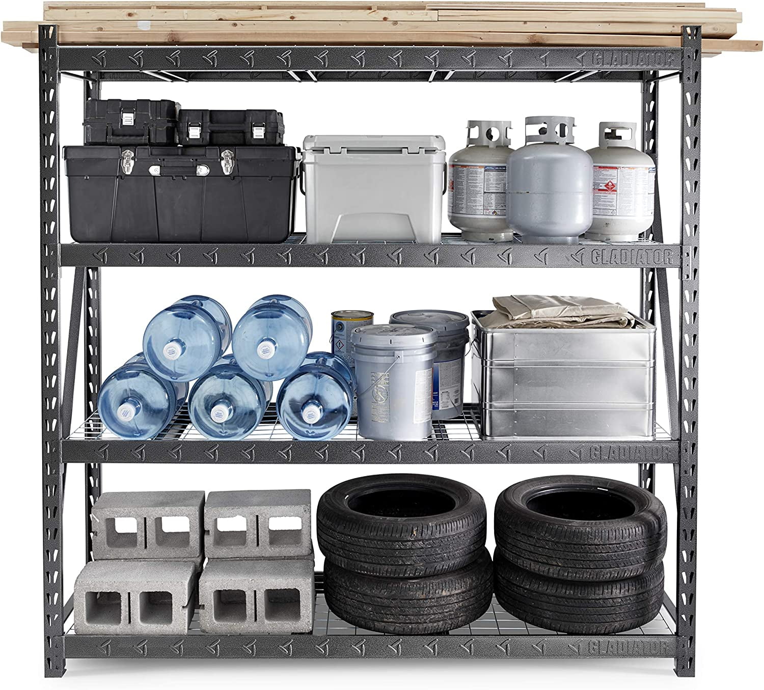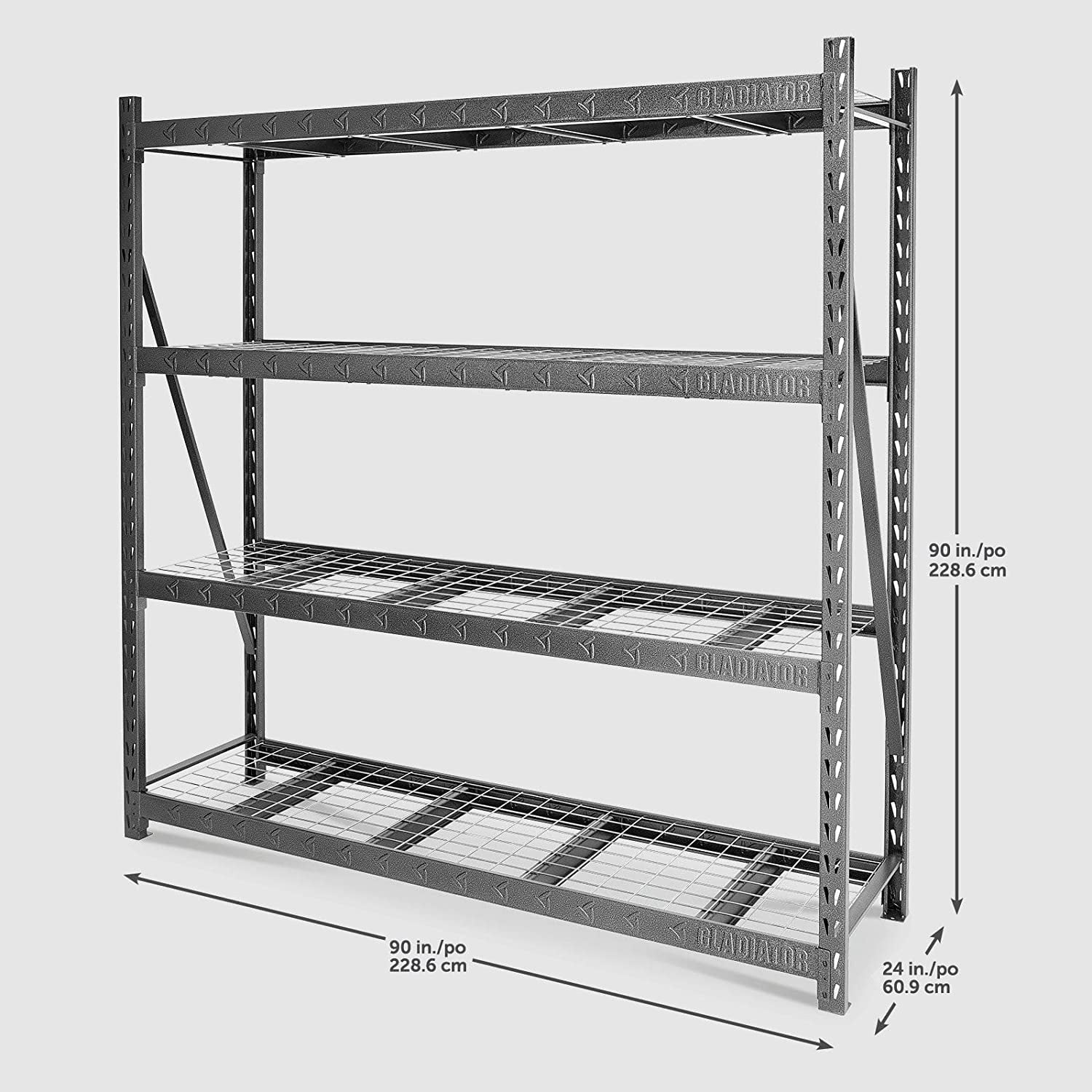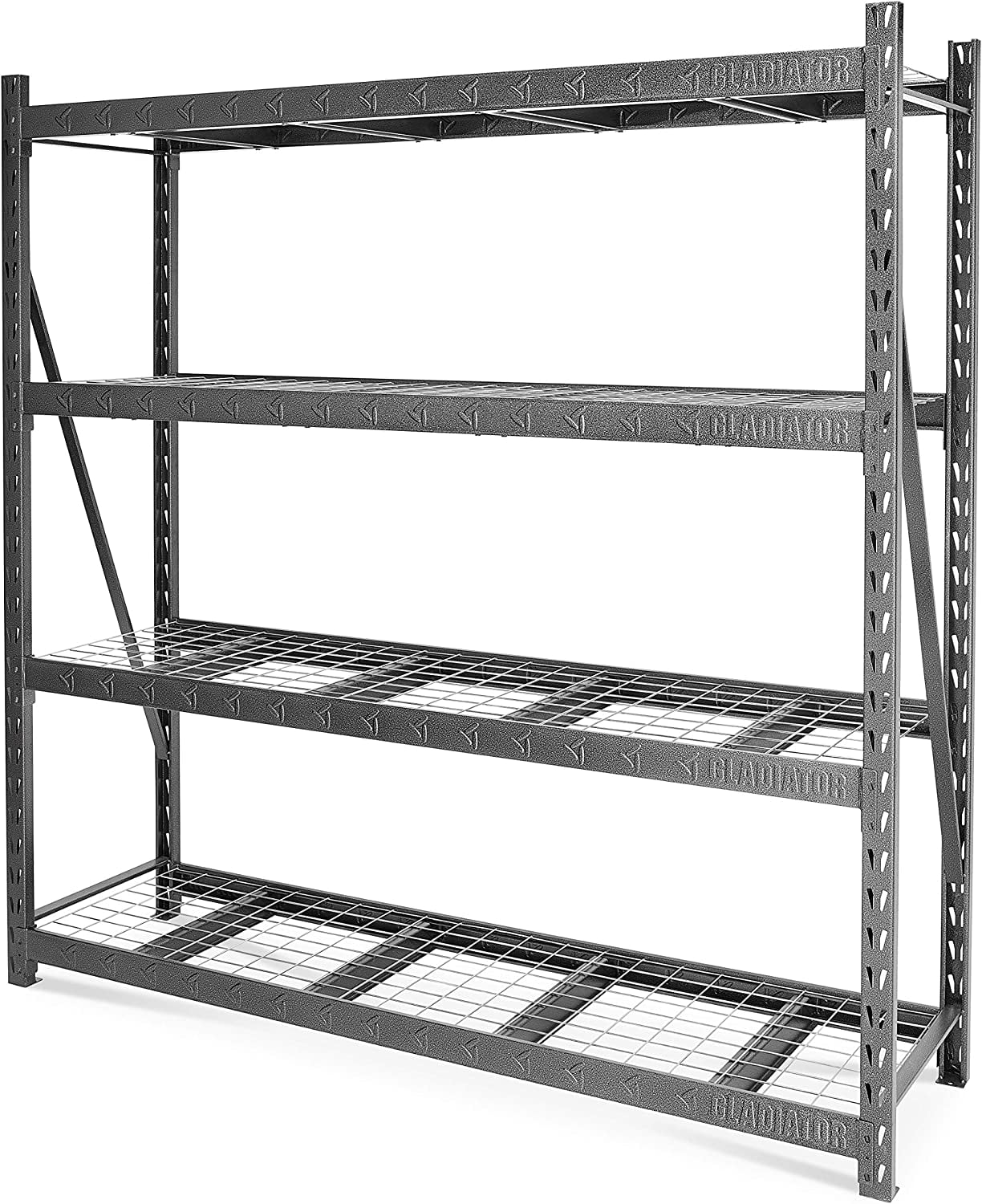 When it comes to superior strength and size, look no further than the 90″ x 90″ Gladiator® Heavy Duty Mega Rack. With over 50 sq ft (4.7 sq meters) of storage space and up to 8,000 lbs weight capacity1, our largest freestanding rack yet can handle the heaviest tools, parts and equipment you pack on it. Plus, its four adjustable shelves can easily be arranged at various heights to fit all your bulky gear in one convenient location.