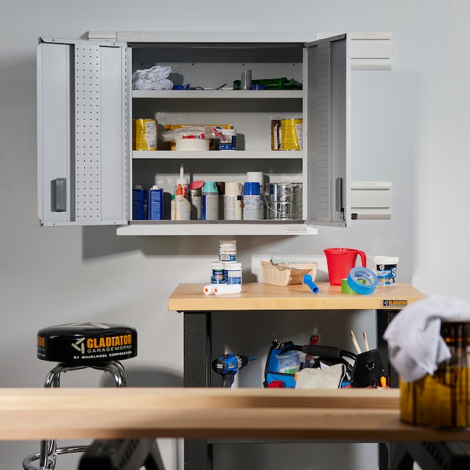 The 30″ Wall GearBox features the long-lasting welded steel durability of the Gladiator® Premier Series. The Wall GearBox conveniently mounts directly to bare studs and drywall or onto Gladiator® wall systems to provide versatility for your changing storage needs. The quality of this Wall GearBox is backed by a hassle-free, lifetime limited warranty. GearWall panels and GearTrack channels sold separately.
