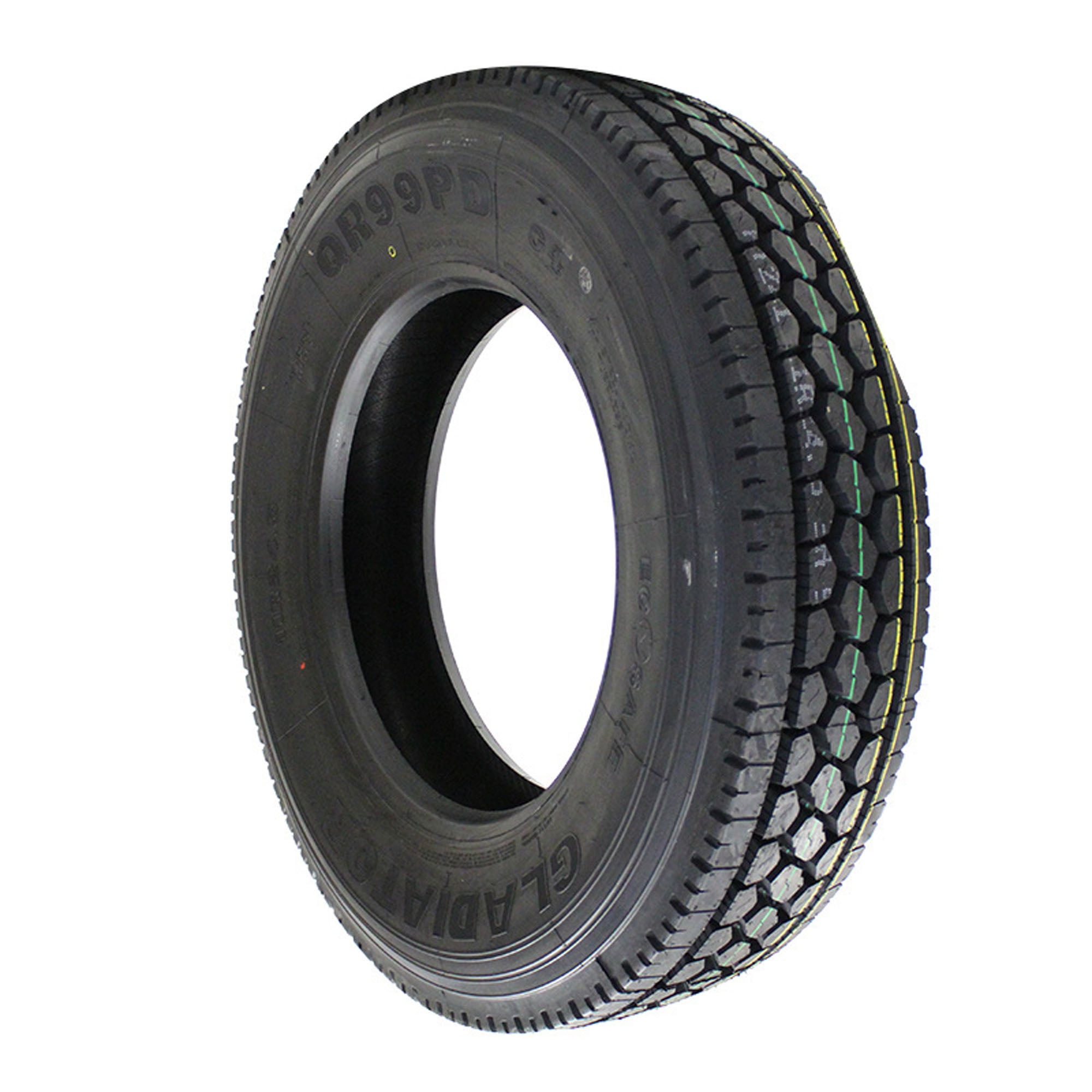Gladiator QR99-PD Premium Drive 11R22.5 146/143M H OVERVIEW Designed for use on the drive axle of semi-trucks in regional and long haul applications, the Gladiator QR99PD tire features a deep tread pattern and stable belt package that not only offer gradual even wear but also improves traction. While the low rolling resistance of the QR99PD results in lower fuel consumption, two circumferential grooves with blocks in between the tread flush out water quickly to regain traction and resist hydroplaning.