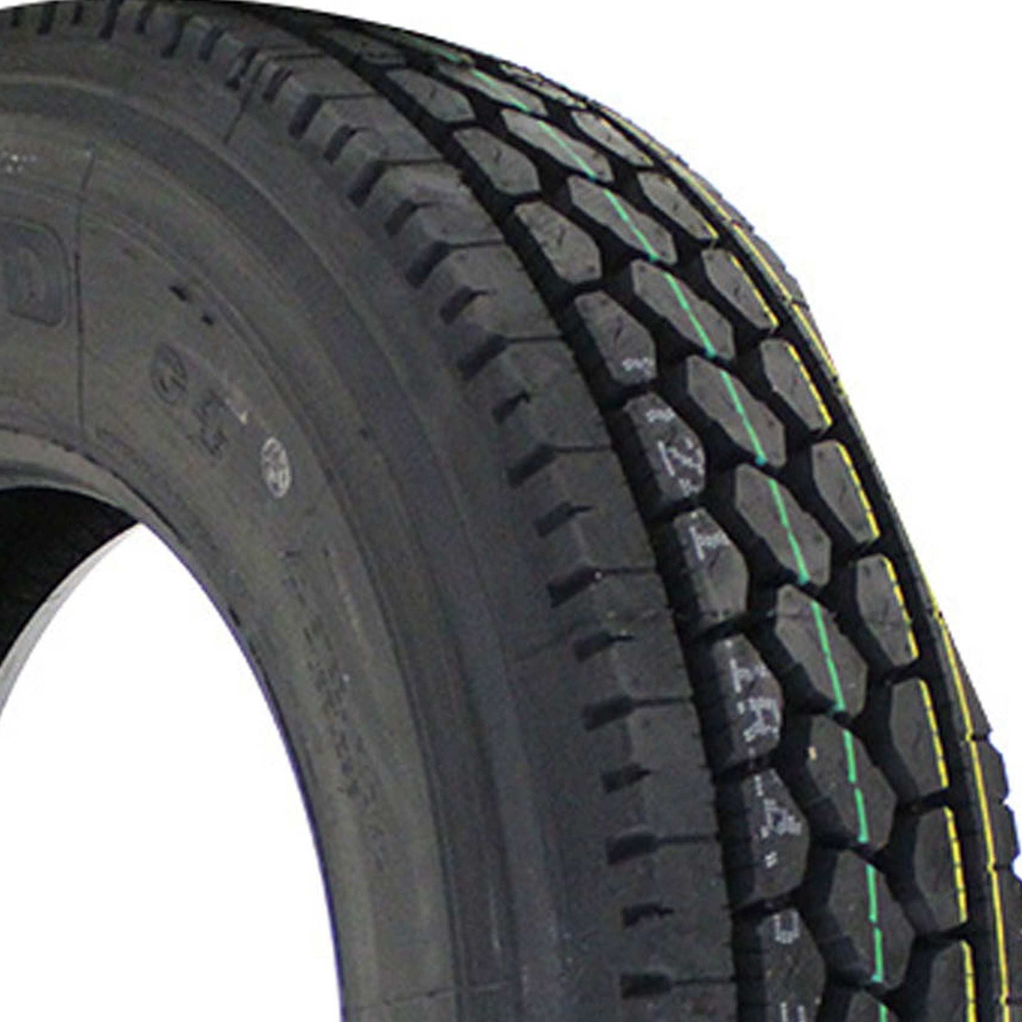 Designed for use on the drive axle of semi-trucks in regional and long haul applications Deep tread pattern for longer wear and improved traction Low rolling resistance for higher fuel efficiency Stable belt package for excellent wear in long-haul applications Stone ejectors safeguard tread from stone drilling for consistent traction and to protect the casing from damage Size: 11R22.5 Load Range: H Product May Vary From Picture Wheel/Rim Not Included