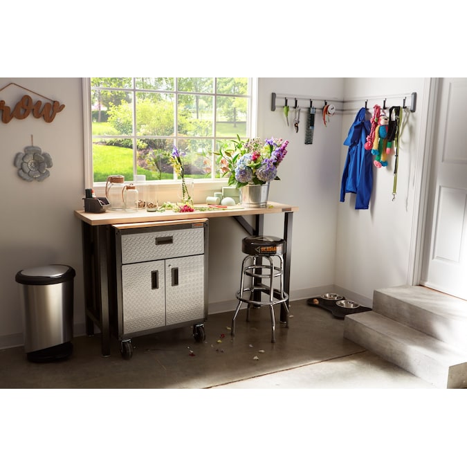 The 3/4-Door Modular GearBox utilizes a drawer and two doors for maximum storage flexibility. The large cabinet area features an adjustable shelf and can accommodate an assortment of tools and garage gear. You can add casters to create a mobile garage workstation. This garage cabinet is ideal for storing smaller automotive and gardening gear or paint supplies, keeping them organized and within reach. Plus, its straightforward design makes assembly quick and simple.