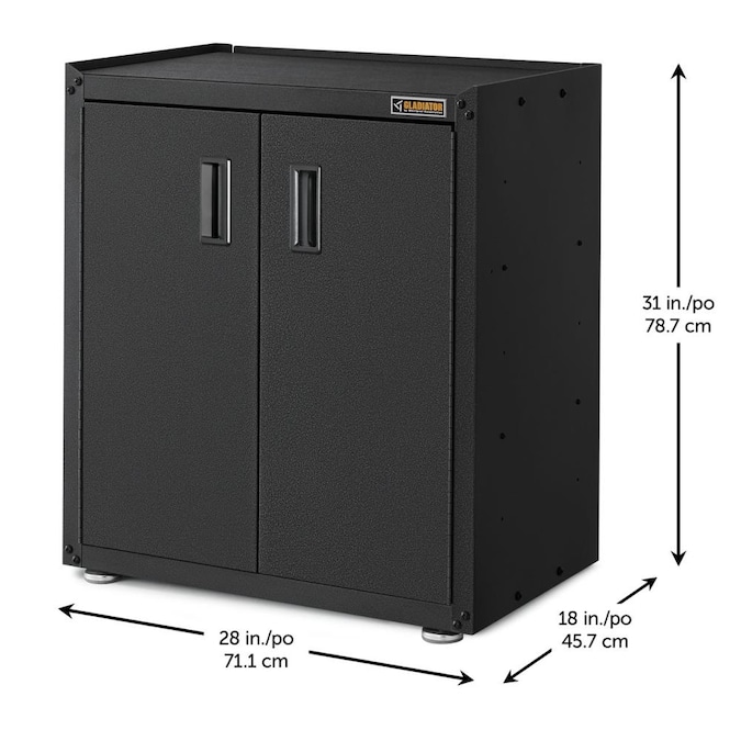This heavy-duty steel cabinet is as tough as it looks. The Ready to Assemble Full Door Modular GearBox offers accessible storage for a variety of tools and garage gear. For even more versatility, add the optional Ready to Assemble Caster Kit or 28″ Hardwood Work Top. Like many Gladiator® products, this cabinet is backed by a 10-year limited warranty.
