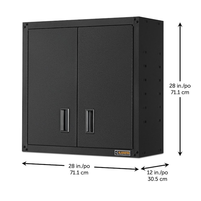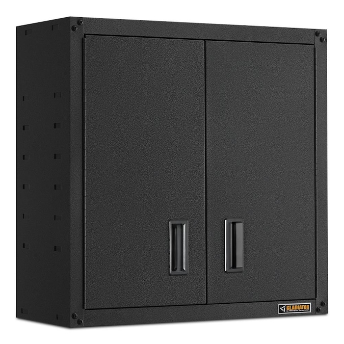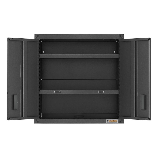 Ideal for smaller automotive or gardening gear, the Ready-To-Assemble Full-Door Wall GearBox easily mounts and repositions on Gladiator® GearWall® Panels or GearTrack® Channels with the included brackets. This heavy-duty steel cabinet with hammered granite finish and matching doors is as tough as it looks and is backed by a 10-year limited warranty