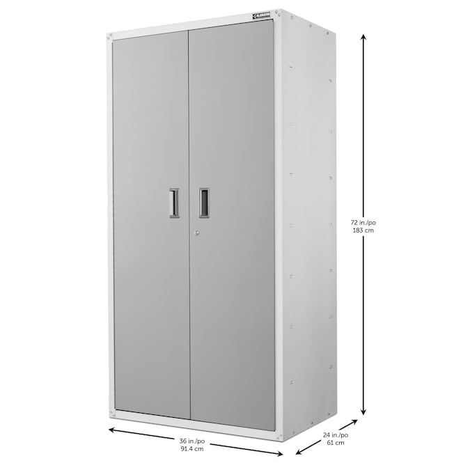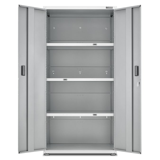 The Gladiator Jumbo GearBox stands at 6 feet tall and 2 feet deep to easily hold your larger items. Three full-width shelves provide exceptional storage space for everything from camping gear to sports equipment. Locking doors with large recessed handles ensure that your gear stays safely stored. A wall bracket kit is included to make this storage cabinet easy to reposition on the Gladiator wall system. Not compatible with caster kit.