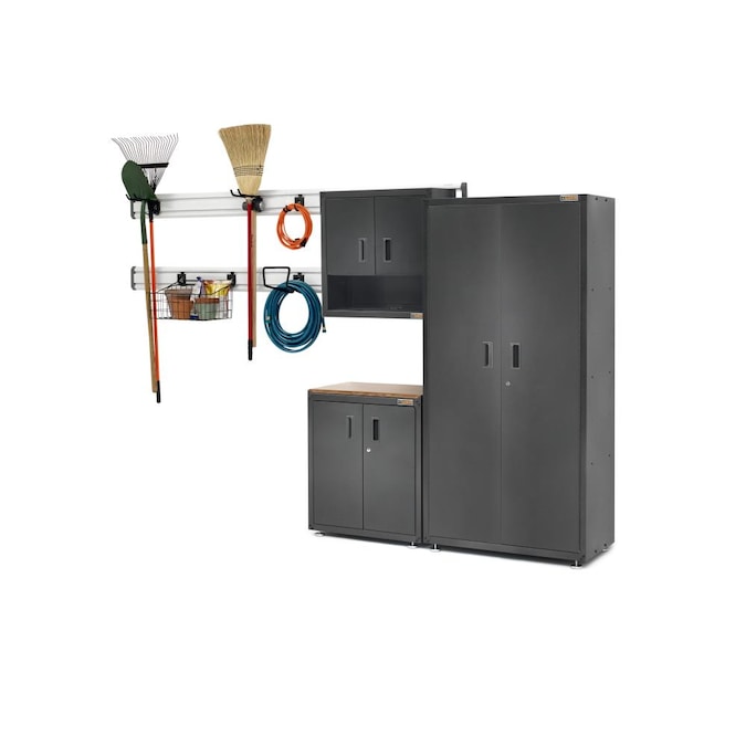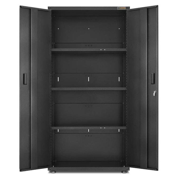 This heavy-duty steel cabinet with hammered granite finish and matching doors is as tough as it looks. At six feet tall and one-and-a-half feet deep, the Ready-to-Assemble Large GearBox has four levels of storage to accommodate gardening tools, paint supplies and automotive gear. Like many Gladiator® products, this cabinet is backed by a 10-year limited warranty. Not compatible with caster kit.