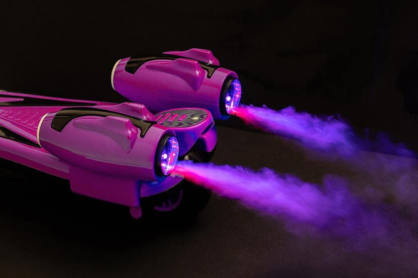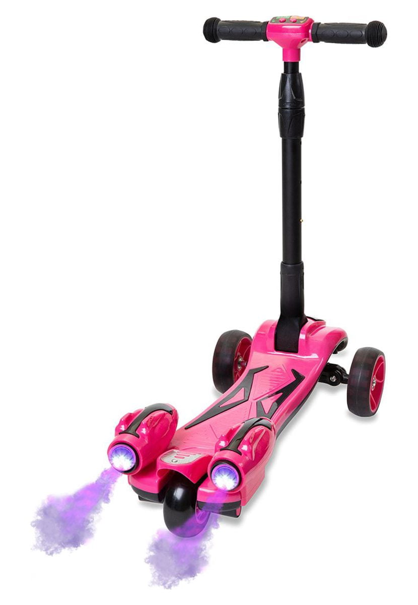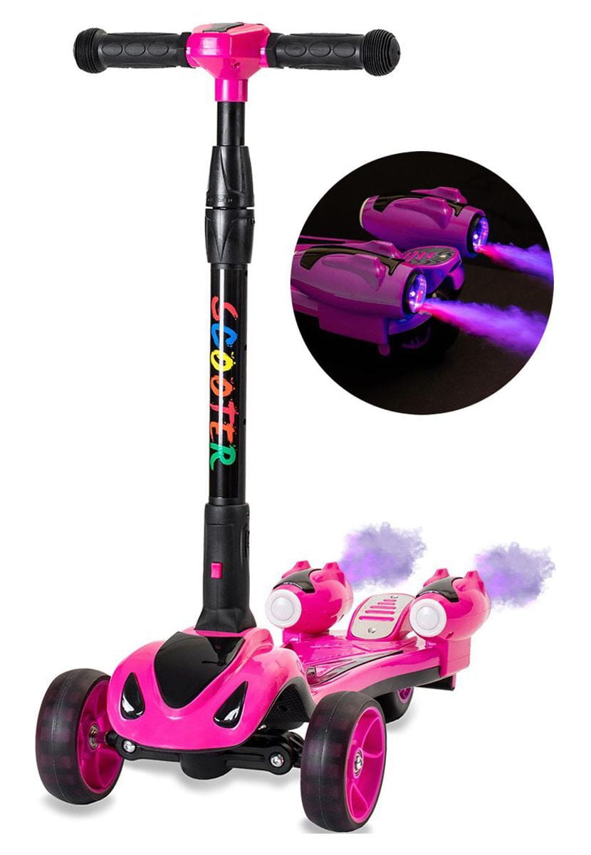 GlareWheel ES-Y1 Kids Rocket Kick Scooter Real Smoking Music and LED Light Portable Foldable