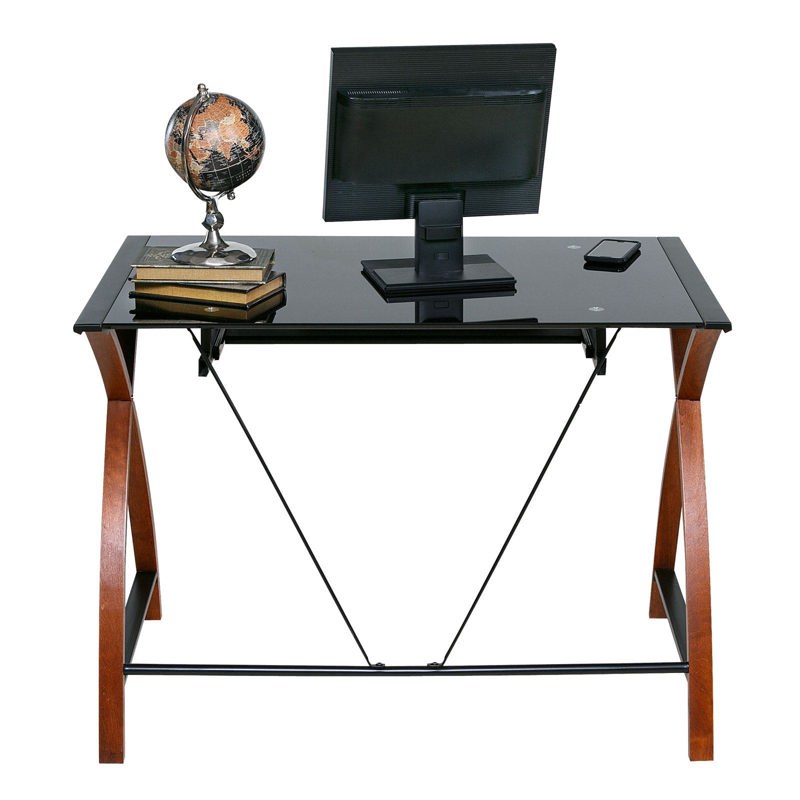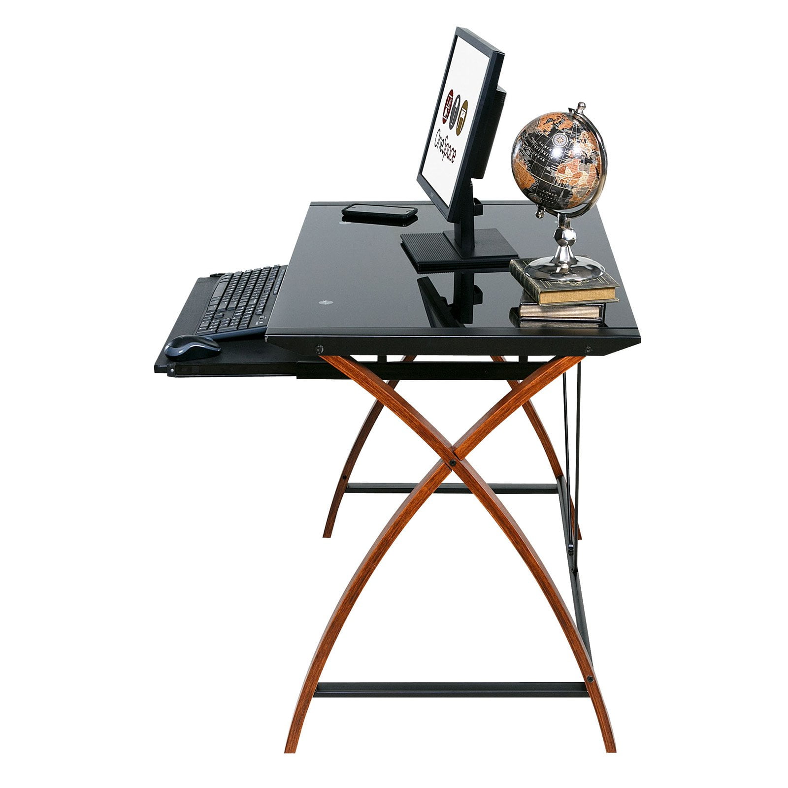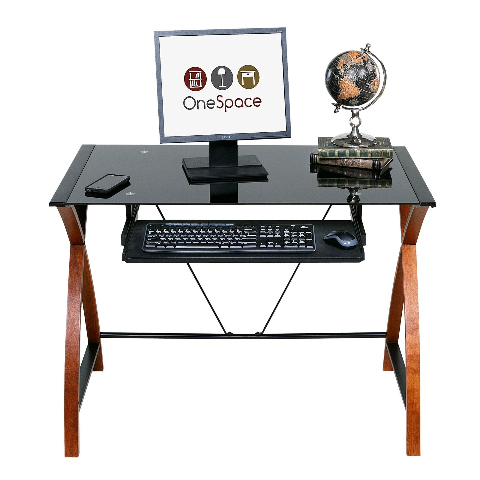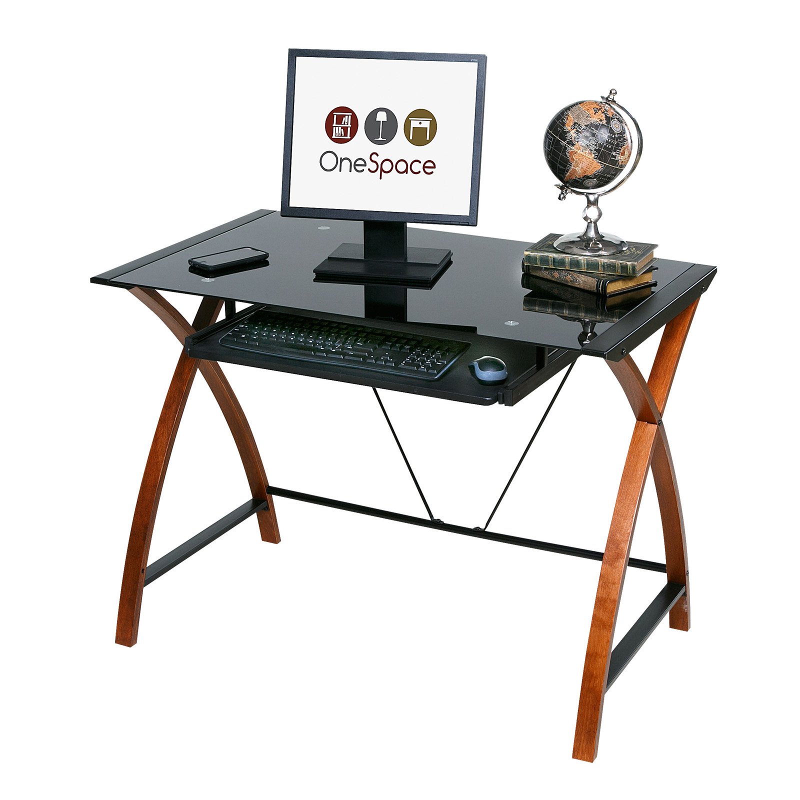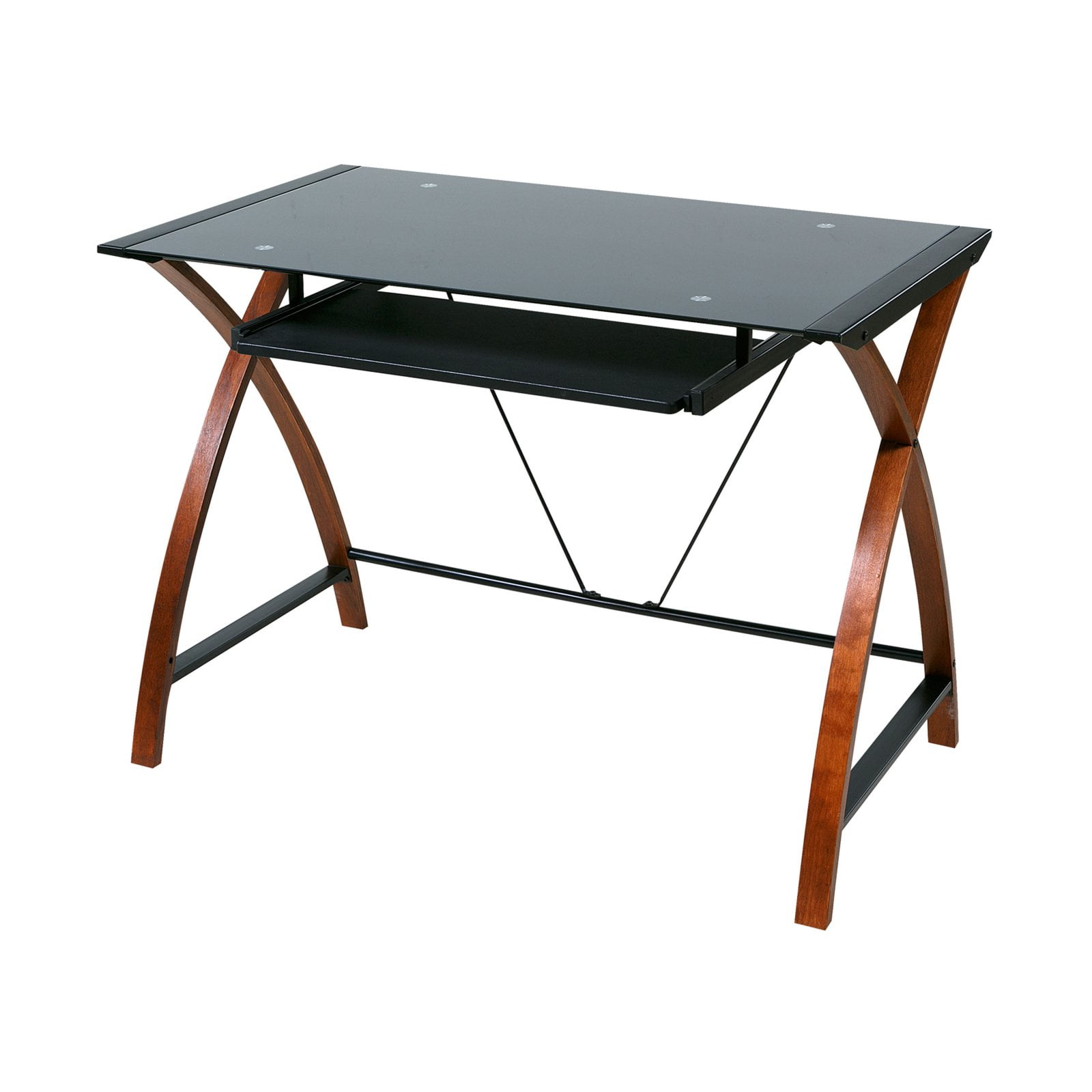 Glass and Wood Computer Desk with Pullout Keyboard Tray