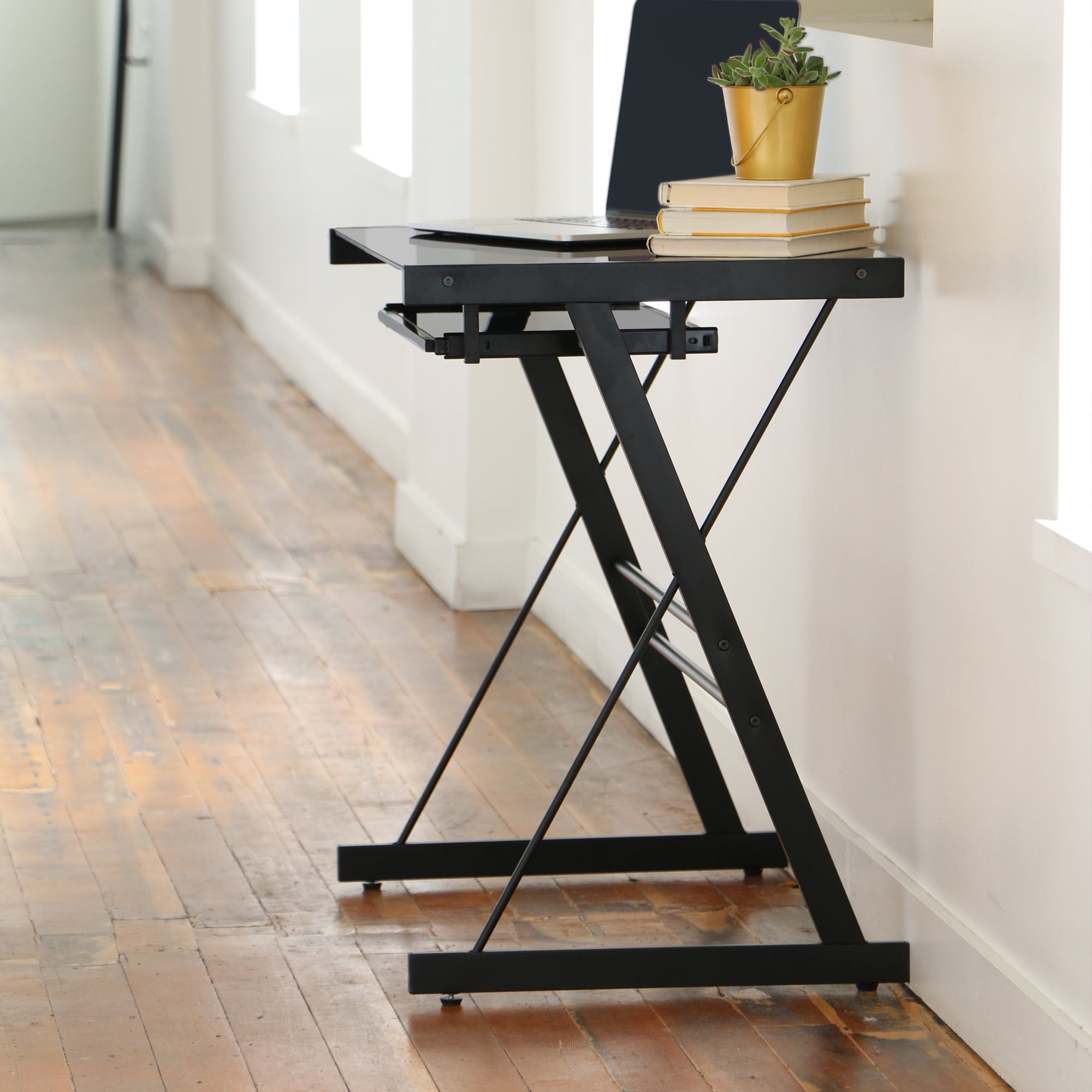 Glass Top Black Computer Desk with Pull-Out Keyboard Tray by Manor Park