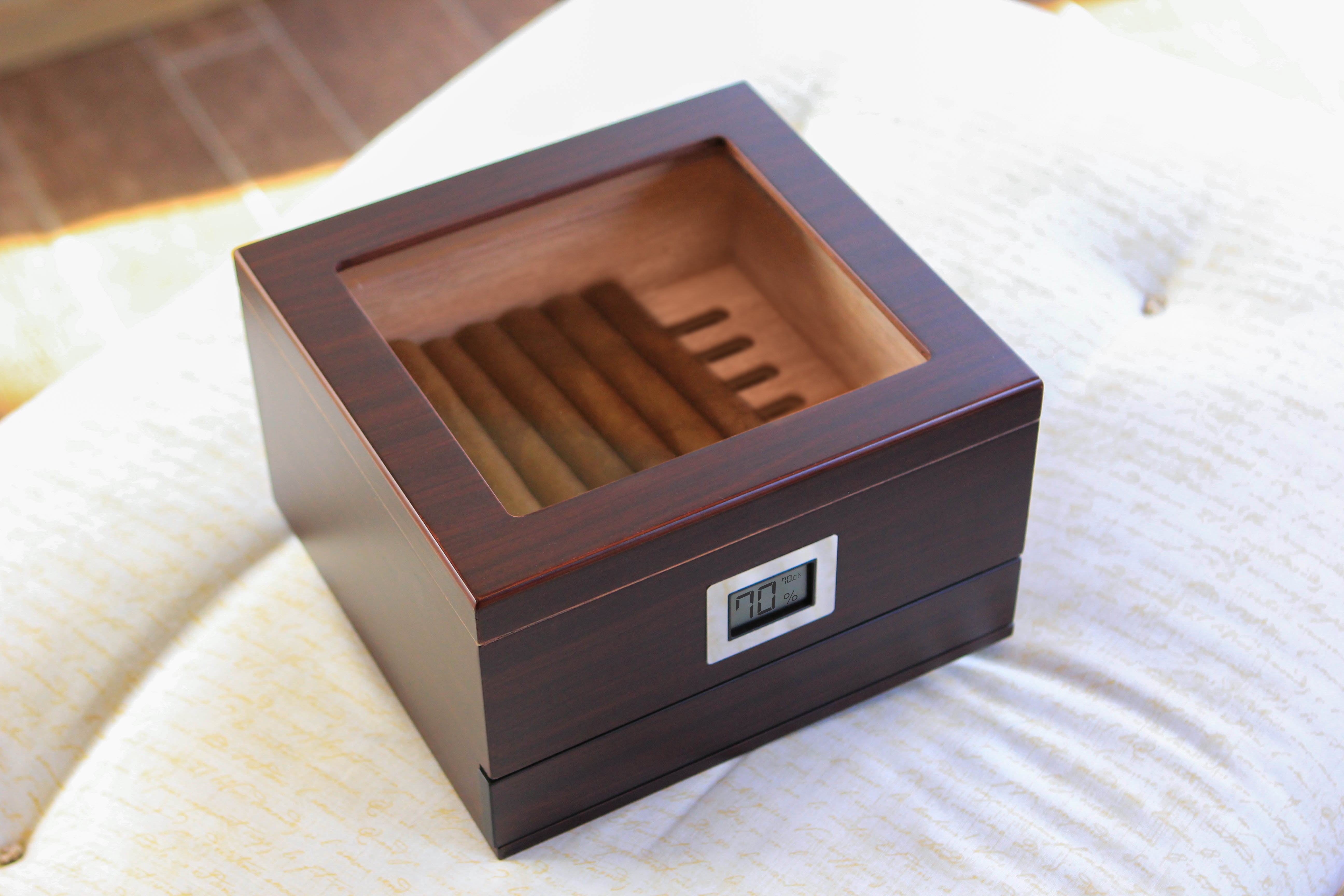Glass Top Handcrafted Cedar Humidor with Digital Hygrometer – Holds 25-50 Cigars by Case Elegance