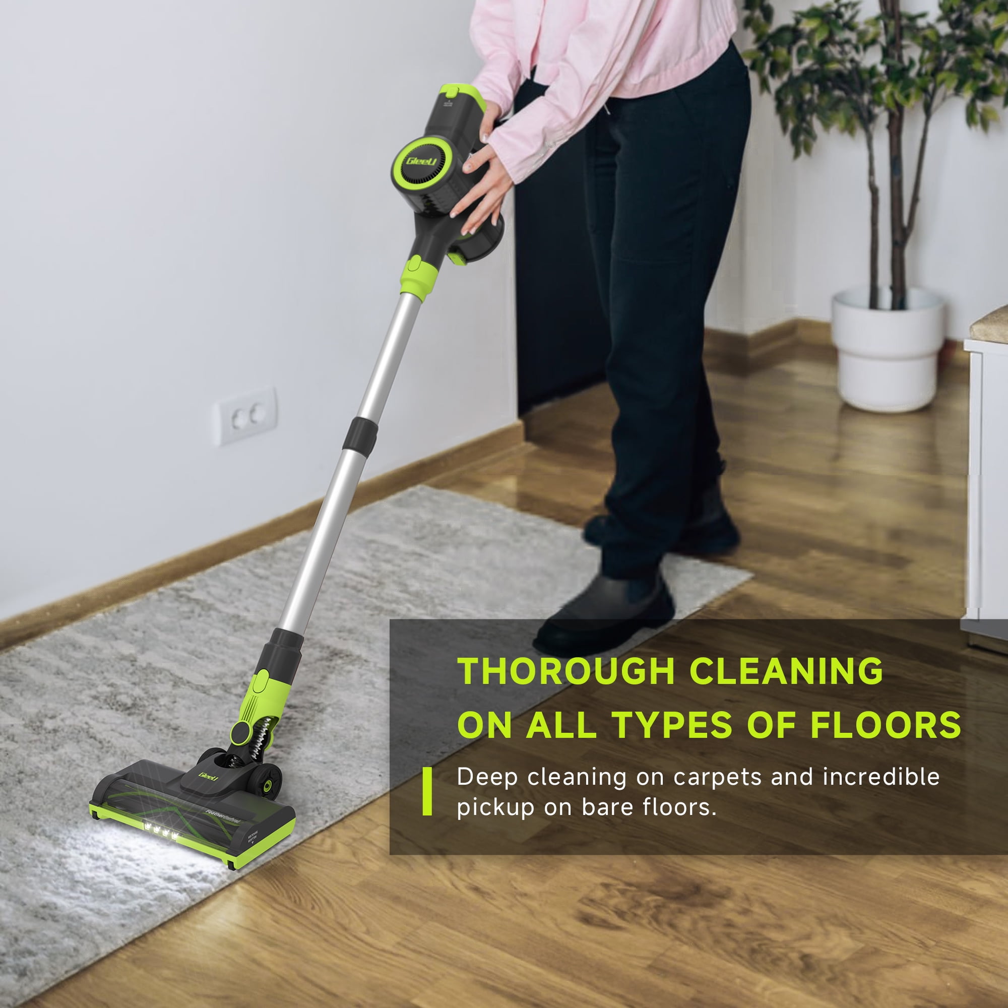 GleeU Cordless Stick Vacuum Cleaner, Lightweight for Hard Floor and Carpet, Pet Hair, GEV1
