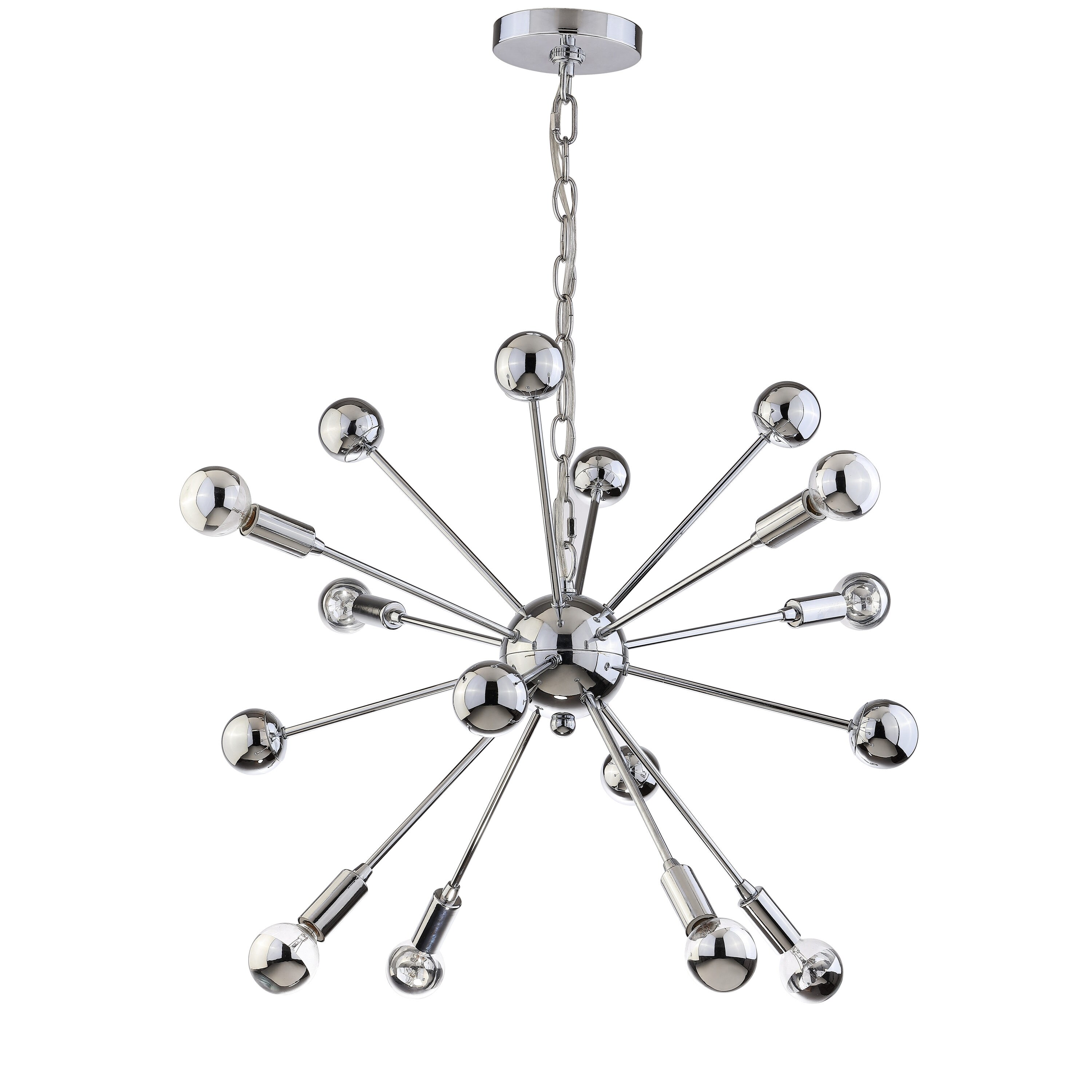 Freshly styled with a futuristic bent, this fabulous fixture is a focal addition to modern decor. A bevy of bulbs jet out from an orb center, bringing a tantalizing effect in classic chrome finish. Amp up the drama factor in any contemporary space with this eight-light chandelier, which is LED compatible and therefore energy-efficient.