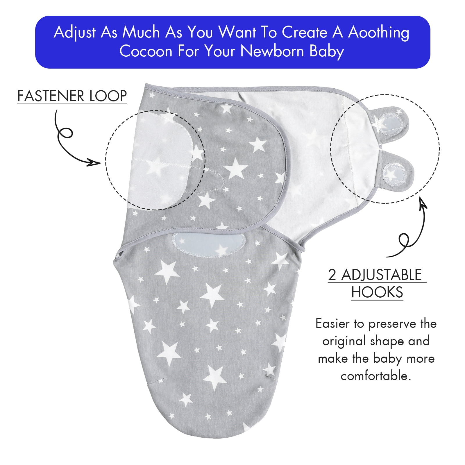 Introducing Gllquen Baby Cotton Swaddle Blankets, the ultimate solution to help your little one sleep soundly! Brand Story: Gllquen Baby is a trusted brand that has been dedicated to crafting high-quality, safe, and comfortable baby products for many years. We understand how important it is to provide your little one with the gentlest care possible. Product Story: Designed specifically for newborns up to 3 months old, our ultra-soft cotton swaddle blanket helps babies feel warm, secure, and soothed all through the night. This 4-pack features a modern grey star pattern, making it a stylish and gender-neutral choice for both baby boys and girls. Product Function Detailed Explanation: Crafted from soft, breathable cotton, the cotton swaddle blanket offers a luxurious comfort that helps keep your baby calm and cozy. Designed with both function and safety in mind, this swaddle blanket gives parents peace of mind knowing their baby is wrapped comfortably and securely, without the risk of loose or unraveling fabric. Specification Information:The cotton swaddle blanket comes as a convenient 4-pack, offering plenty for daily use and on-the-go changes. Each swaddle blanket measures 28.74 inches x 22.05 inches, making it an ideal size for newborns up to 3 months old. Made from soft, breathable cotton, these swaddles are machine washable and quick-drying. Lightweight and compact, they’re also travel-friendly, fitting easily into your diaper bag for outings, visits, or family trips. Usage Instruction: Wrap your baby snugly in the swaddle blanket, using the hook and loop to secure a gentle yet secure fit. Make sure the wrap is firm around the upper body while allowing enough room for the hips to move freely — this helps support healthy hip development and prevents discomfort or strain. Additional Information: Important Tips: Every baby is unique, with individual sleep needs and preferences. It’s important to understand when swaddling is appropriate and how to do it safely. Pay attention to your baby’s cues. Adding extra layers of clothing or blankets underneath the swaddle can increase the risk of overheating and may restrict your baby’s movement unnecessarily. Help your newborn drift into peaceful, uninterrupted sleep with the cotton swaddle blanket. Soft, breathable, and designed with care — order now and give your baby the comfort they deserve. Gllquen Baby Swaddle, Swaddle Blanket, Swaddle Sack, Nursery Swaddling Blankets 0-3 Months, Unisex, STANDARD 100 by OEKO-TEX, Adjustable Newborn Swaddle Wrap Infant Sleep Sacks Babies Preemie 4 Pack Small