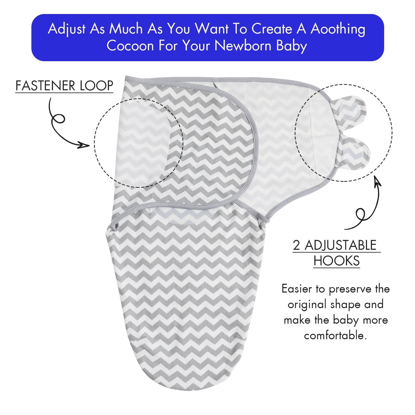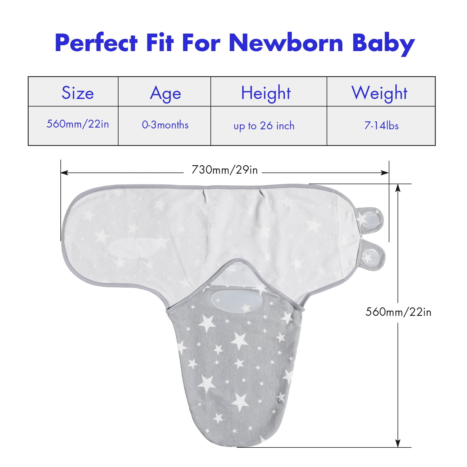 From womb to world: Premium Swaddle 0-3 months Ultra-soft baby swaddle blanket Adjustable Size: Medium/Large For newborn(unisex) Weighs 16 oz Dimensions 28.74″ L x 22.05″ W x 0.01″ H Machine washable Keeps baby snug and secure Comfortable fit helps newborns stay wrapped Secure closure helps prevent blankets from unravelling Soft fabric helps babies sleep soundly Hook-and-loop closure makes sure your baby doesn’t slip out Convenient back slits that allow easy use with baby swings and bouncers Promotes sleep and reduces startle reflex Certified 100% premium organic cotton material Designed for newborns up to three months old Give your little one a safe and comforting womb-like feeling Global Certification ensures quality The perfect way to provide your baby with comfort and security Comfort, security, and style Find peaceful rest for a newborn Get the perfect fit with this one-size-fits-all swaddle every time