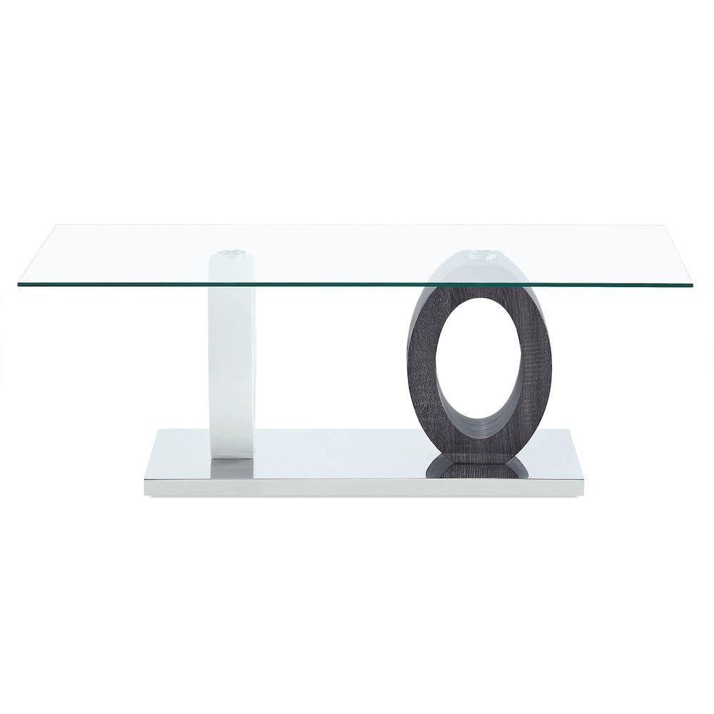 Introducing T1628C Transitional White Glass Top Coffee Table by Global Furniture USA. Unique design and modern appeal are the highlights of this dynamic and functional cocktail table. From the gleaming Glass Top, to the sleek silver-toned base, this table will become the visual focal point in any room setting and will transform your seating/entertainment area from basic to wow! Striking two-toned dual oval base of grey and white make this table easy to coordinate décor and provides many decorating possibilities. The lovely Glass Top is generously proportioned, making this table great for entertaining or display. Quality craftsmanship in all facets of production ensures durability and long-lasting wear. Inspired design elements and versatile function make this cocktail table a must have piece for your home and will provide you with years of enjoyment and usefulness. Features: WHITE/GREY PAPER finish Glass top Two toned dual oval base Wood grain details Silver toned base Specifications: Assembly Required: yes Warranty: yes Warranty Description: 6 month limited manufacturers