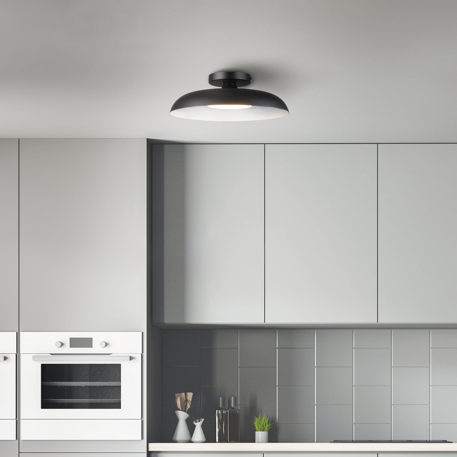 THAT 70s DECOR: a matte black finish pairs with a wide brim white inner shade to create a flush mount ceiling light that combines contemporary and modern design with a super 70s aesthetic MATTE BLACK FINISH: with a matte black finish and white inner shade, this flush mount adds a pop of color to your room while being a convenient and practical light source INTEGRATED LED: this flush mount ceiling light is LED Integrated with 21W, 800 Lumens, 3000 Kelvins, 90 CRI STYLISH PLACEMENT OPTIONS: a perfect blend of a modern look with a trendy glam design, you can use your ceiling light in virtually any room to bring style and function to your home DIMMABLE: fully dimmable with compatible dimmer switch to create the perfect atmosphere (dimmer switch sold separately) – perfect for adjusting the lighting atmosphere to match your mood, at any time EASY INSTALL: this flush mount ceiling light includes all mounting hardware for quick and easy installation – ready to update your in-home lighting situation, whenever you are! LIGHT YOUR HOME IN STYLE: the matte black outer design with a matte white interior offers stylish lighting for your well decorated home – perfect for any kitchen, hallway, or living room setting