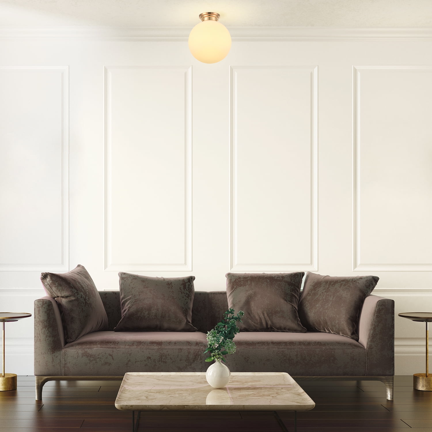 CURATED RETRO: the curated retro styling of the Portland Semi-Flush Mount Ceiling Light brings forth a sense of nostalgia and current trends using vintage color palettes and an opal shade OPAL GLASS SHADE: the opal glass shade provides a warm light that brightens your indoor space with style BULB REQUIREMENTS: 1x E26/Medium Base 60 W Max Bulb (sold separately) – Compatible with LED, Incandescent and Halogen Bulbs – LED or Incandescent Bulb Recommended, G-Type Bulb recommended DIMMABLE: fully dimmable with a compatible dimmer switch to create the perfect atmosphere (dimmer switch sold separately) EASY INSTALL: includes all mounting hardware for quick and easy installation BRING THE COLLECTION HOME: check out the other pieces of the Portland Collection by Globe Electric to bring a cohesive look throughout your home MAKE IT SMART: automate your semi-flush mount ceiling light by adding a Globe Electric Smart bulb – simply screw it in and create different lighting solutions with your phone – the options are endless
