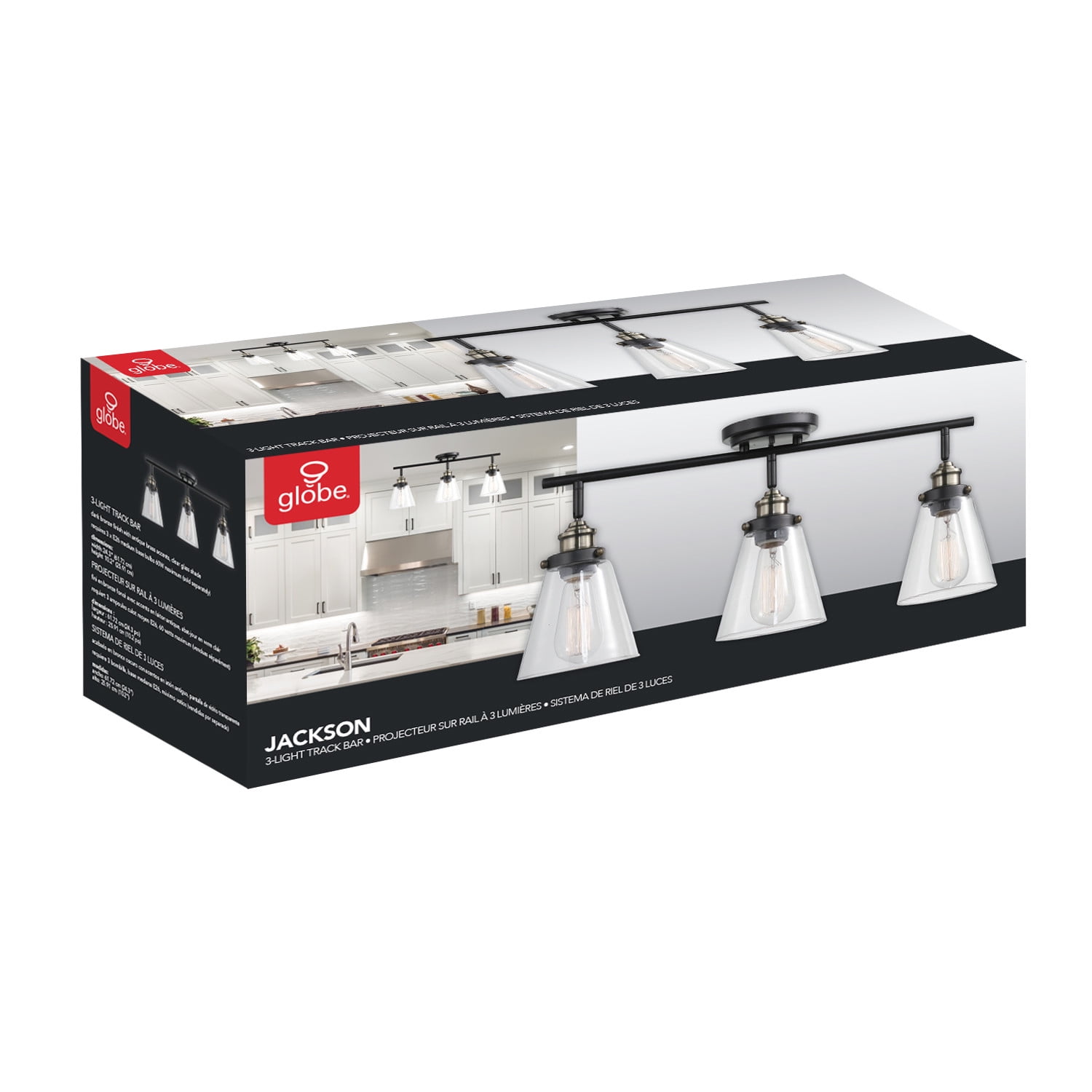MODERN FARMHOUSE DESIGN: with a unique take on comfort and simplicity, this track lighting fixtures ceiling modernizes the farmhouse trend with a warm finish and modern industrial elements STYLISH PLACEMENT OPTIONS: adjustable track heads and a round canopy allow you to use this kitchen ceiling light in a variety of different ways – use it on your ceiling as a traditional track light or use it on your wall as a trendy vanity light BULB REQUIREMENTS: 3x E26/Medium Base 60W Bulbs (sold separately) – Compatible with LED and Incandescent Bulbs PIVOTING TRACK HEADS: three pivoting track heads help create the perfect lighting design – focus them strategically to create the ultimate lighting experience in every room EASY INSTALL: the track lighting fixtures ceiling piece includes all mounting hardware for quick and easy installation DIMMABLE: fully dimmable with a compatible dimmer switch to create the perfect atmosphere (dimmer switch sold separately) MAKE IT SMART: automate your track light by adding a Globe Electric Smart bulb – simply screw it in and create different lighting solutions with your phone – the options are endless! Product Net Content UOM: 1 Each.