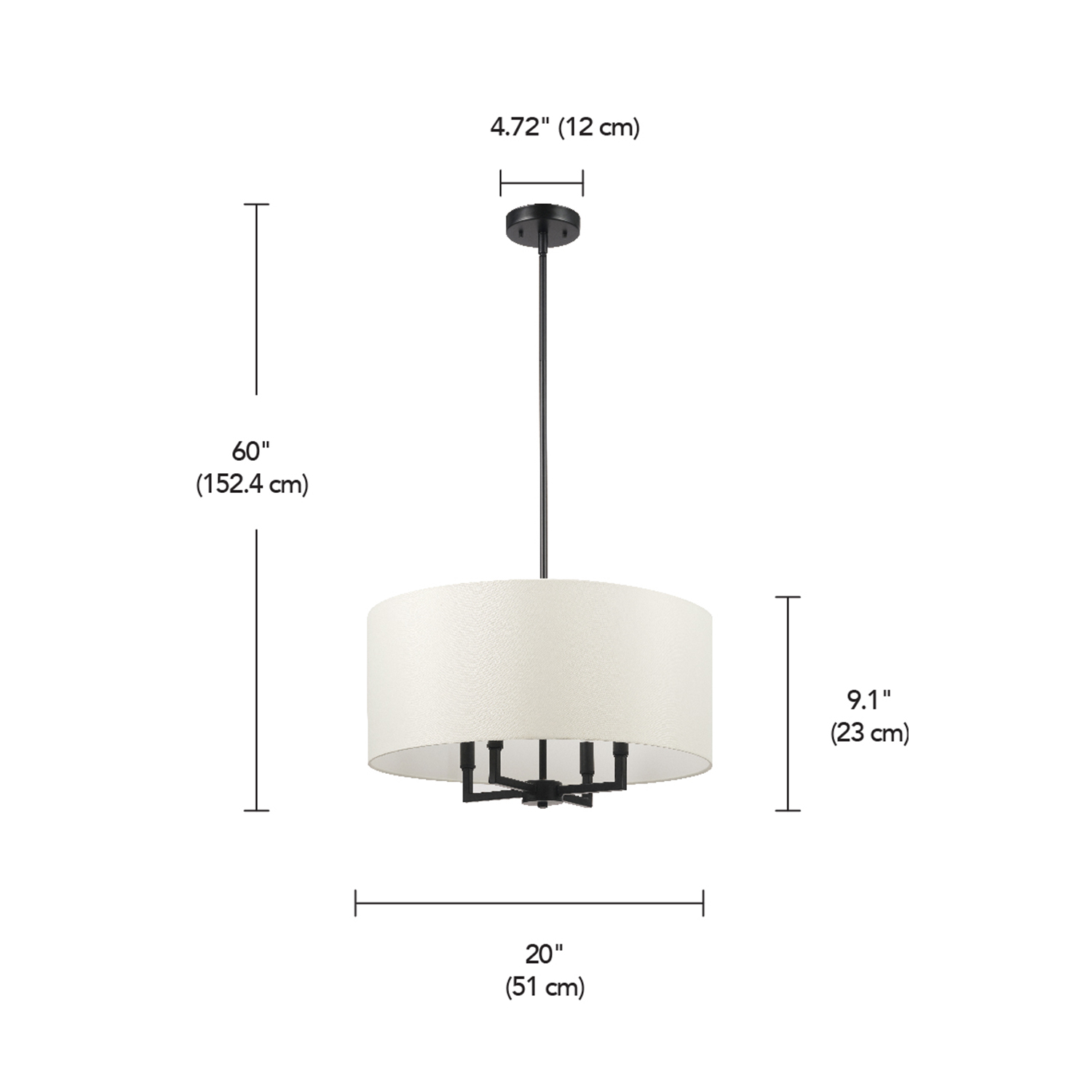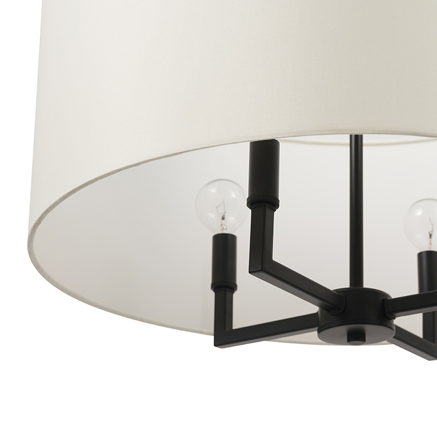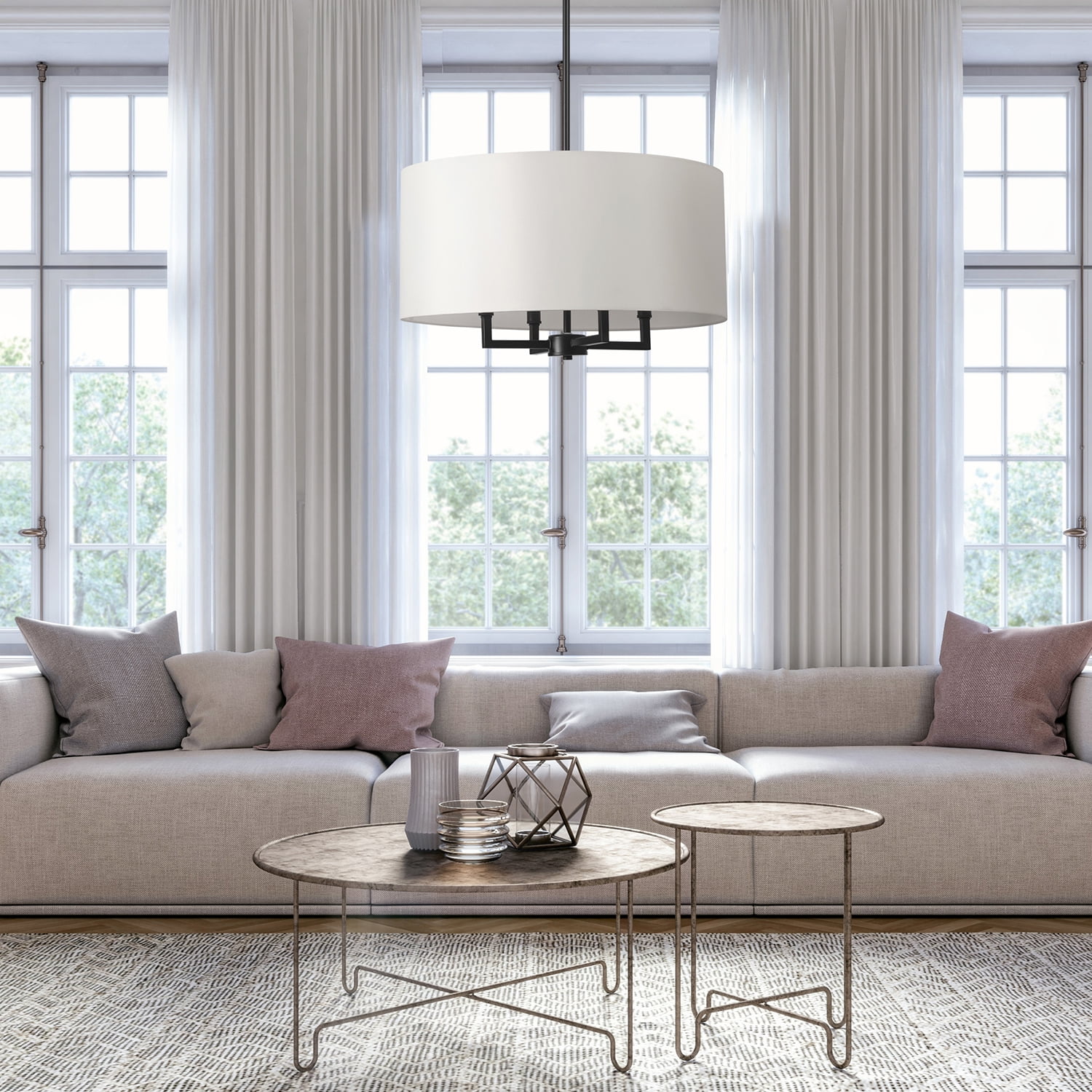 Globe Electric 4-Light Matte Black Chandelier, Beige Fabric Shade, Modern Farmhouse Style, 91004458