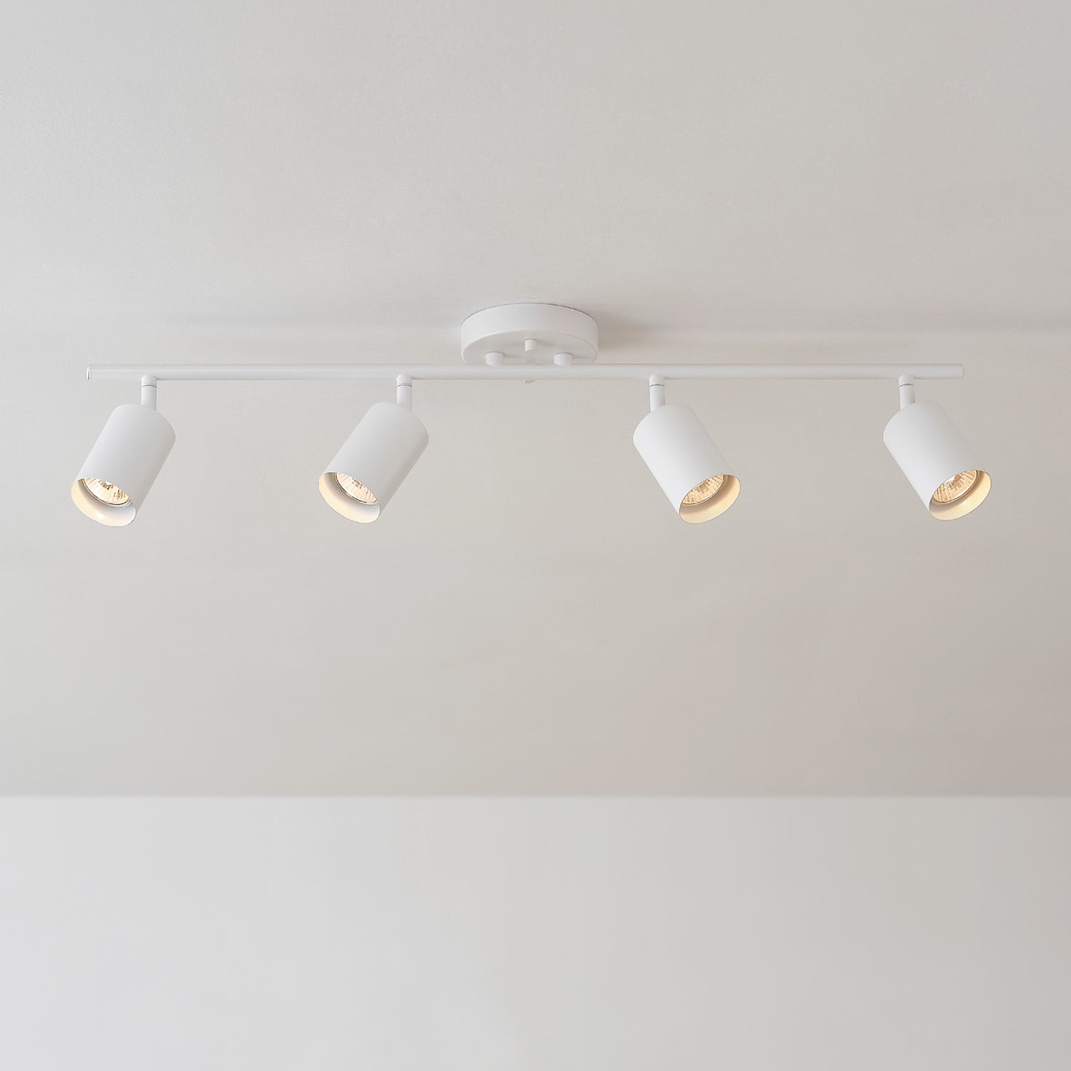 MINIMALIST DESIGN: the 4-Light Track Lighting’s cylindrical pivoting track heads paired with a matte white color palette showcases the perfect minimalist design for any home PIVOTING TRACK HEADS: the matte white pivoting track heads let you direct light where you need it most, providing the perfect lighting ambiance for every moment and every room in your home BULB REQUIREMENTS: 4x GU10 Bi-Pin Twist and Click 50W Bulbs (sold separately) – Compatible with LED and Incandescent Bulbs DIMMABLE: fully dimmable with a compatible dimmer switch to create the perfect atmosphere for your living space (dimmer switch sold separately) EASY INSTALL: the track lighting fixtures ceiling piece includes all mounting hardware for quick and easy installation – can be installed on a sloped or vaulted ceiling STYLISH PLACEMENT OPTIONS: with adjustable track heads, you can place your kitchen lights on the ceiling as a traditional track light or use it on your wall as a trendy vanity light MAKE IT SMART: automate your track light by adding a Globe Electric Smart bulb – simply screw it in and create different lighting solutions with your phone – the options are endless! Product Net Content UOM: 1 Each.