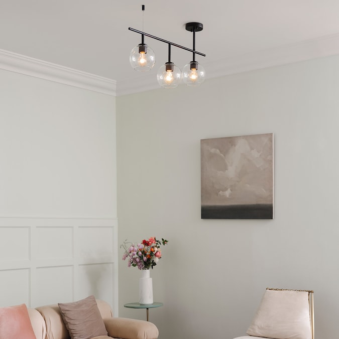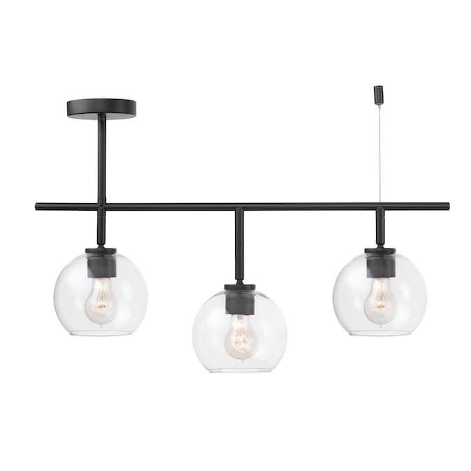 With mid-century modern styling, the Mika 3-Light Track Light is the answer to all your lighting needs. Clear glass shades are accented with a side canopy feature emphasizing the modern design trend, while the center track head that hangs lower than the rest brings a mid-century vibe. Not your average track light, the shades create gorgeous ambient lighting while the matte black finish completes the luxurious look. This light is so versatile, it completely transforms any room into a mid-century modern dream. Finish the design by showcasing the bulb of your choice. Try vintage Edison bulbs to complete the desired feel or try round bulbs for a completely unique look.