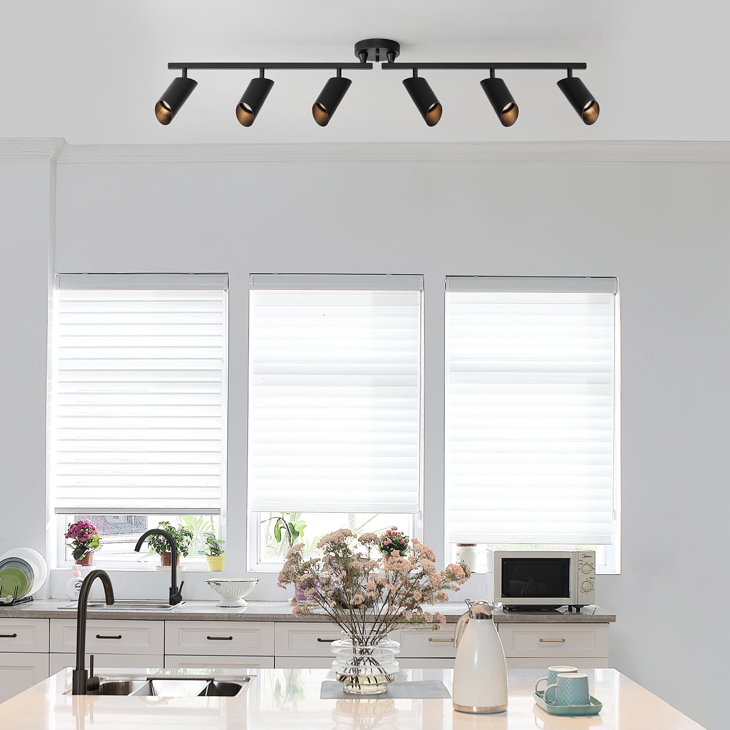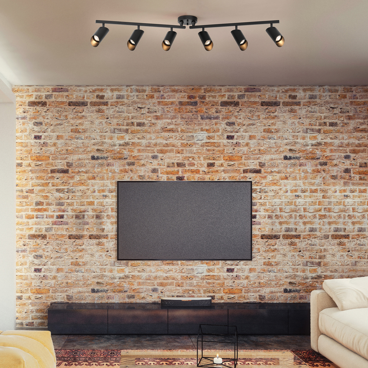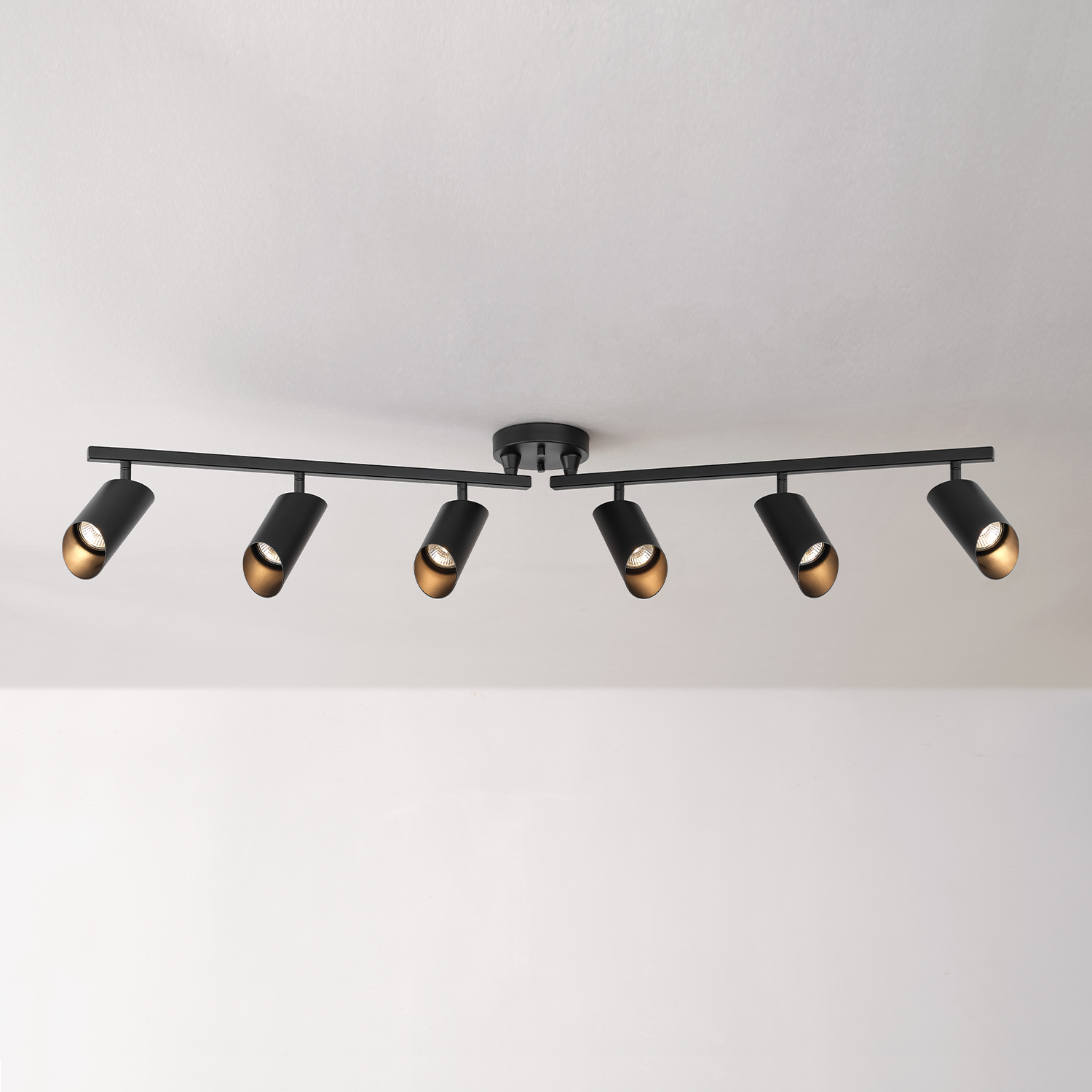 MODERN STYLE: blending function and design, this Globe Electric 6-Light Track Light characterizes a modern design style with its matte black finish, monochromatic look, moveable track bars, and pivoting track heads FOLDABLE TRACK ARMS: the 6-Light Track Light is uniquely adjustable to fit your needs – switch between a straight line, a V-shape, and L-shape to find the shape that best suits your room BULB REQUIREMENTS: this track bar requires 6x GU10 Twist and Click Base 50W Max Bulbs (sold separately) – Compatible with LED and Incandescent Bulbs PIVOTING TRACK HEADS: the pivoting track heads let you direct the light where you need it most providing the perfect lighting ambiance for every moment and every room DIMMABLE: although the dimmer switch is not included, this track light bar is fully dimmable with a compatible dimmer switch to create the perfect atmosphere for any situation EASY INSTALL: this stunning track ceiling light includes all mounting hardware for quick and easy installation – can be installed on a sloped or vaulted ceiling VERSATILE PLACEMENT OPTIONS: pivoting track heads, a round canopy and trendy matte black finish allow you to use your track light in a variety of different ways and rooms