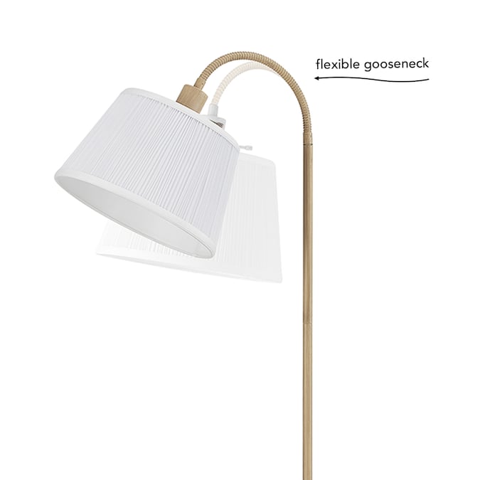 The timeless Maris Floor Lamp by Globe Electric is the perfect accessory. With a classic white fabric shade and light faux wood pole and base, this stunning lamp complements any decor. The slim profile and 68-inch height is ideal for a living room, bedroom or dining room and can be placed anywhere your heart desires. Thanks to its adjustable arm feature, you can customize where the light shines by simply moving the arm in the direction you choose. An on/off socket switch is super convenient while the six-foot cord ensures that you can place the Maris Floor Lamp wherever you want – even if an outlet is nowhere near-by.