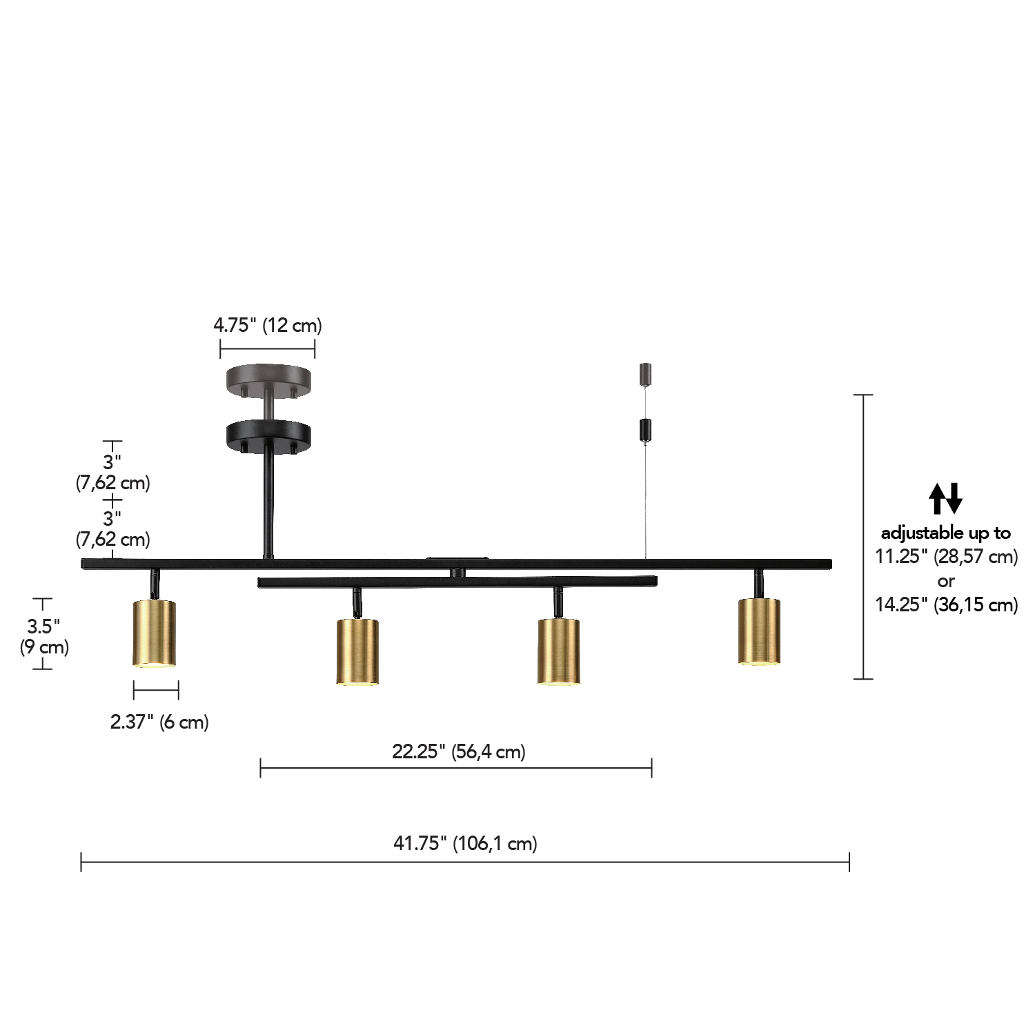 Globe Electric Matte Black and Matte Brass 4-Light Track Lighting with Center Swivel Bar