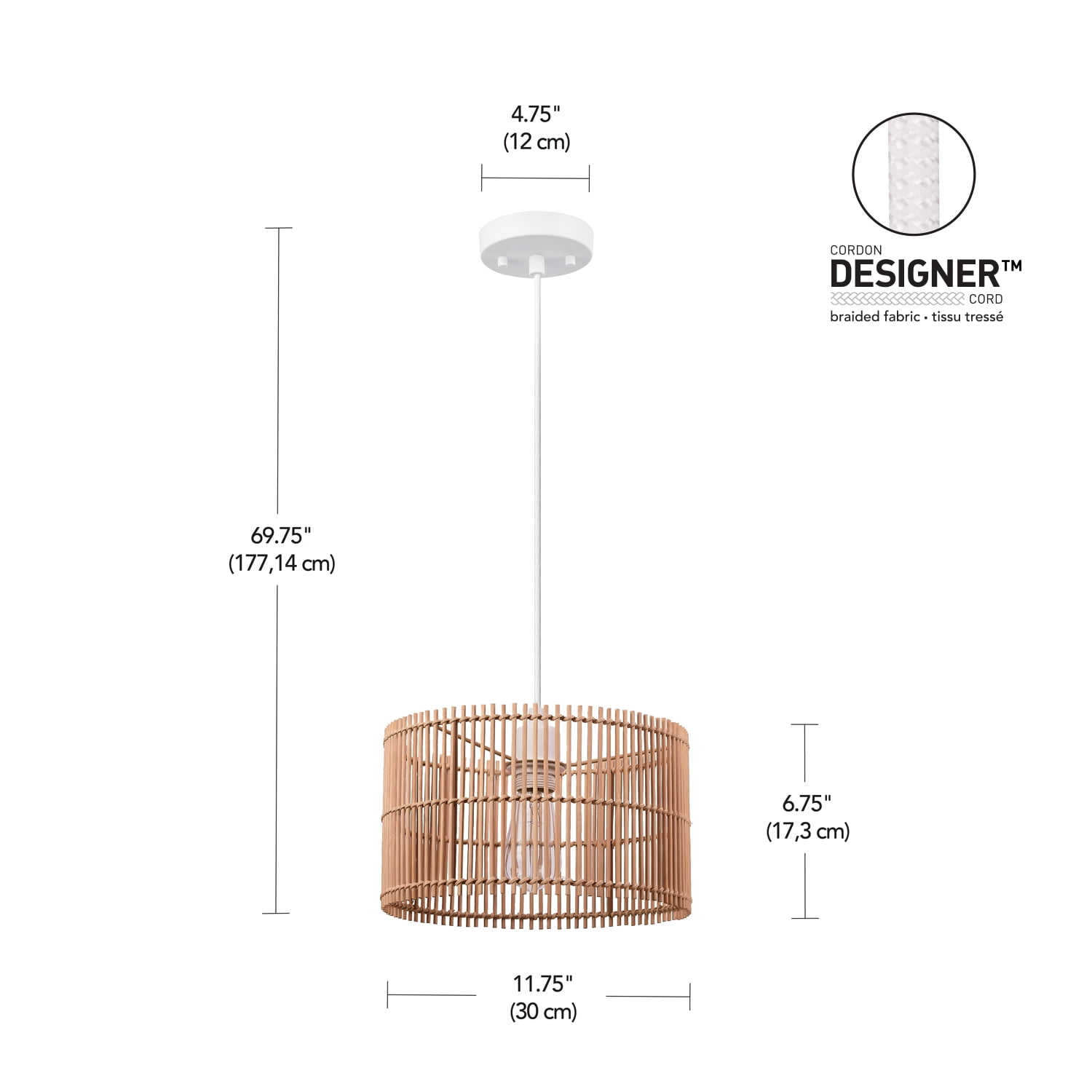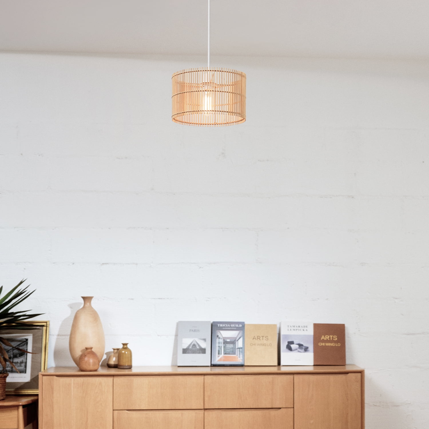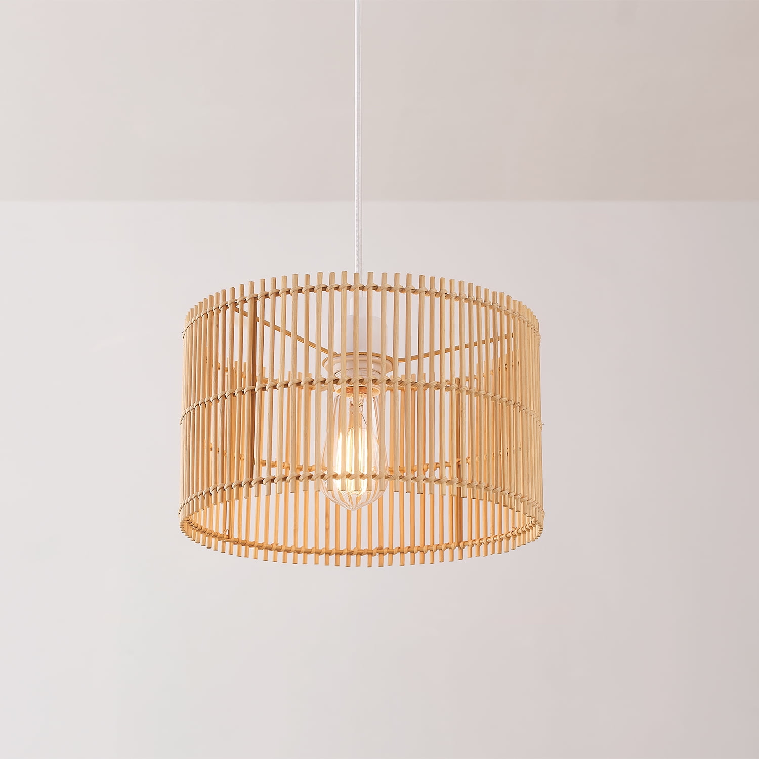 JAPANDI: the natural bamboo shade of the Tammi 1-Light Pendant Light Fixture pairs perfectly with a white fabric cord to embody the Japandi style of rustic and simplistic beauty NATURAL BAMBOO SHADE: the modern styling of this natural bamboo shade offers a unique peekaboo bulb design that lets you update your space with your own personal taste by choosing your favorite bulb BULB REQUIREMENTS: this pendant light requires 1x E26/Medium Base 60W Max Bulb (sold separately) – Compatible with LED, Incandescent and Halogen Bulbs – Dimmable LED or Incandescent Bulb Recommended ADJUSTABLE HANGING HEIGHT: the 5-foot white fabric hanging cord allows you to adjust the height of your pendant to make it ideal for any area of your home while keeping to its classic Japandi styling PEEKABOO SHADE: the peekaboo bamboo shade showcases the bulb of your choice – change the bulb, change the look! Try a designer bulb for a trendy design or a vintage Edison bulb for an easy retro feel DIMMABLE: the Tammi Pendant Light Fixture is fully dimmable with a compatible dimmer switch to create the perfect atmosphere (dimmer switch sold separately) EASY INSTALL: this japandi-style pendant light fixture includes all mounting hardware and clear instructions for quick and easy installation – ready whenever you are!