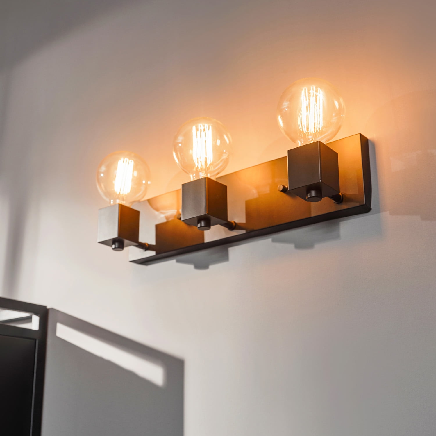 DARK ACADEMIA: with a minimalist open socket construction and matte black finish, the Trento 3-Light Vanity Light by Globe Electric showcases the trendy world of dark academia design OPEN SOCKET CONSTRUCTION: showcase the bulbs of your choice- change the bulbs, change the look! Try designer bulbs for a trendy design or use vintage Edison bulbs for an easy vintage feel BULB REQUIREMENTS: this vanity light requires 3x E26/Medium Base 60W Max Bulbs (sold separately) – Compatible with LED, Incandescent and Halogen Bulbs – Dimmable LED or Incandescent Bulbs Recommended VERSATILE PLACEMENT: with a solid matte black finish, the Trento 3-Light Vanity Light is the most versatile choice for your home with an amazing upscale industrial look that can be used in any room EASY INSTALL: this gorgeous Globe Electric Vanity Light includes clear instructions and complete accessories for quick and easy at-home installation (Bulbs not included) DIMMABLE: this upscale industrial light fixture is fully dimmable with a compatible dimmer switch to create the perfect atmosphere (dimmer switch sold separately) MAKE IT SMART: automate your light by adding a Globe Electric Smart bulbs – simply screw them in and create different lighting solutions with your phone – the options are endless!