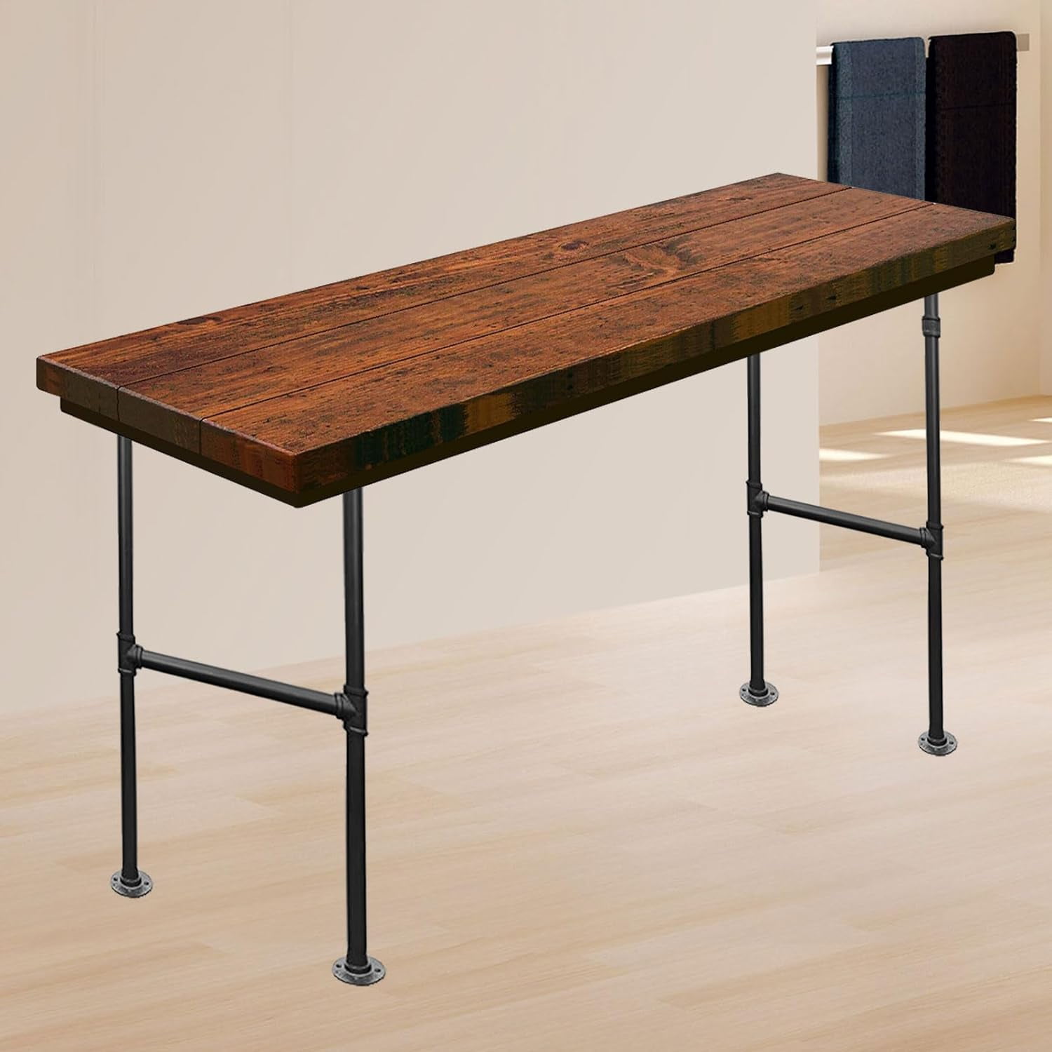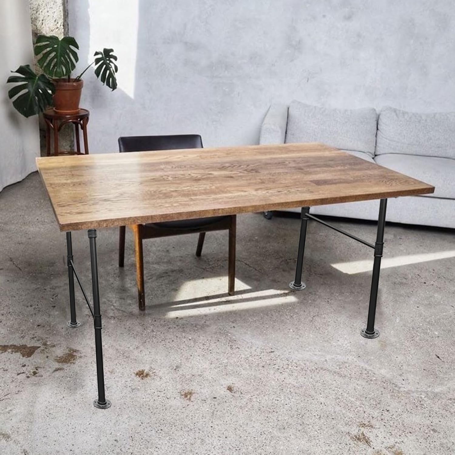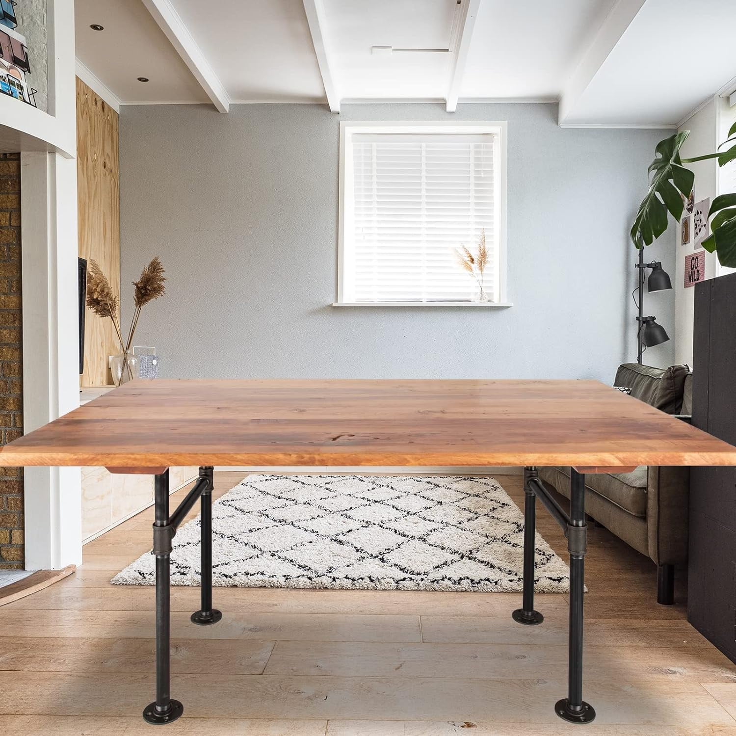 Our side table legs are made from strong metal components to ensure maximum durability. They’re also painted, which prevents the desk leg from rusting. It gives us a beautiful, smooth, no-oily, finish clean look. Build your own contemporary end tables and desks with this pipe leg kit. Pair it with maple, walnut, pine, mahogany or any kind of wood slab top. The metal table legs are partially assembled simply screw pieces together and attach pipe flanges directly to the wood boards. Which is also economical and environment-friendly. Packing includes two table legs, enough adjustable pads and screws. We also provide worry-free after-service and wish to give you a nice shopping experience. If you have any questions, please feel free to contact us. Each end table leg is composed of 2 long pipes(each about 38″), 1 horizontal pipe(about 14″), the total size after assembly is about 38″ (H)X 15″(W).