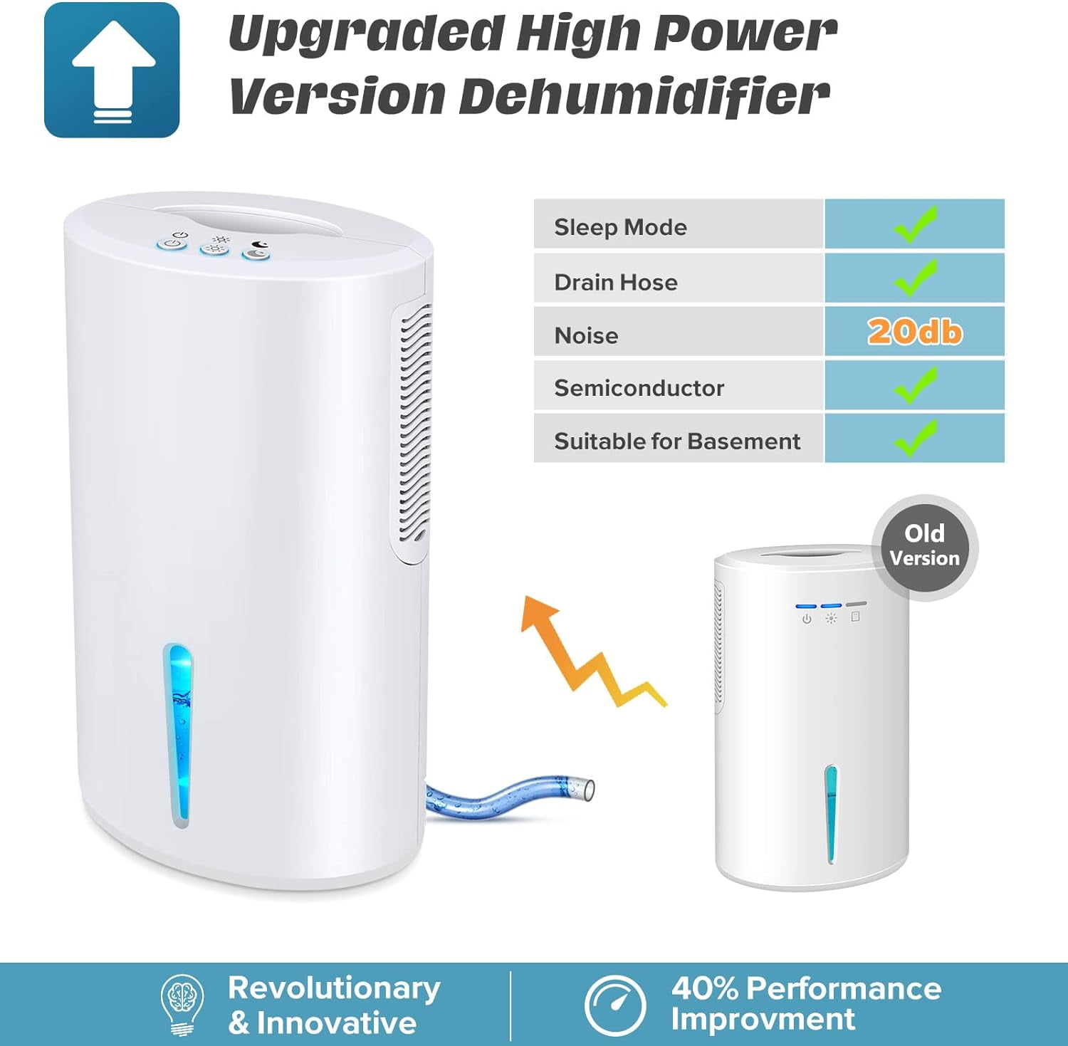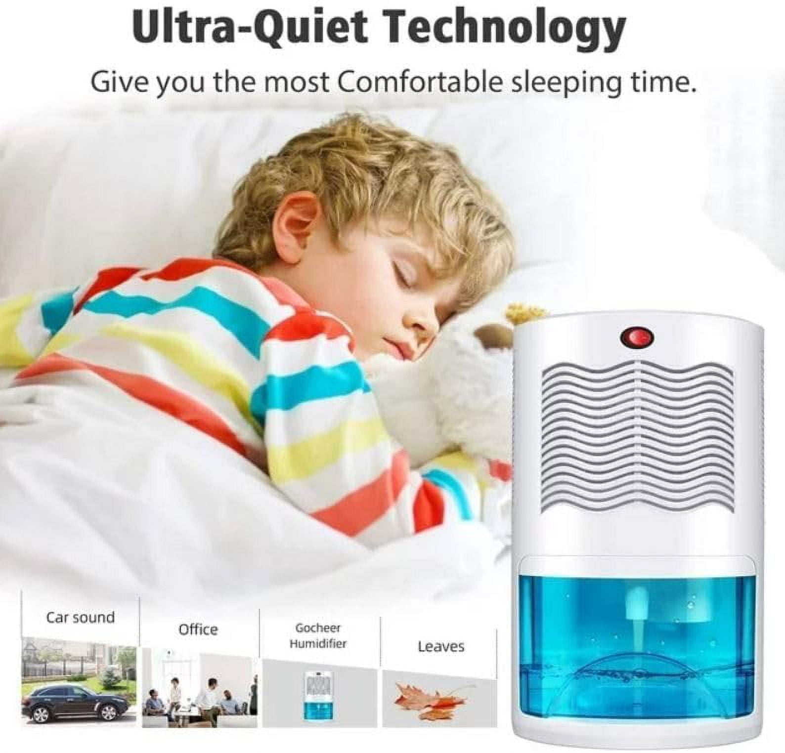 Gocheer 1000ml 800 sq ft Dehumidifier in White – Ultra Quiet, 7-Color Ambient Lighting, Portable Efficient dehumidification performance, removing excess moisture swiftly 2000ml water tank extracts up to 45 ounces of water per day (at 86°F and 80% RH) Energy-efficient operation, consuming only 1.15kW/24h Suitable for rooms ranging from 107 to 800 square feet Includes an additional drainage hose for continuous drainage 7-color ambient lighting enhances the atmosphere of your living space Ultra-quiet operation (below 30dB) for a tranquil environment Auto shut-off feature when the water tank is full Red indicator light alerts you to empty the tank Portable and compact design for easy relocation Effectively removes moisture from bedrooms, bathrooms, RVs, and closets