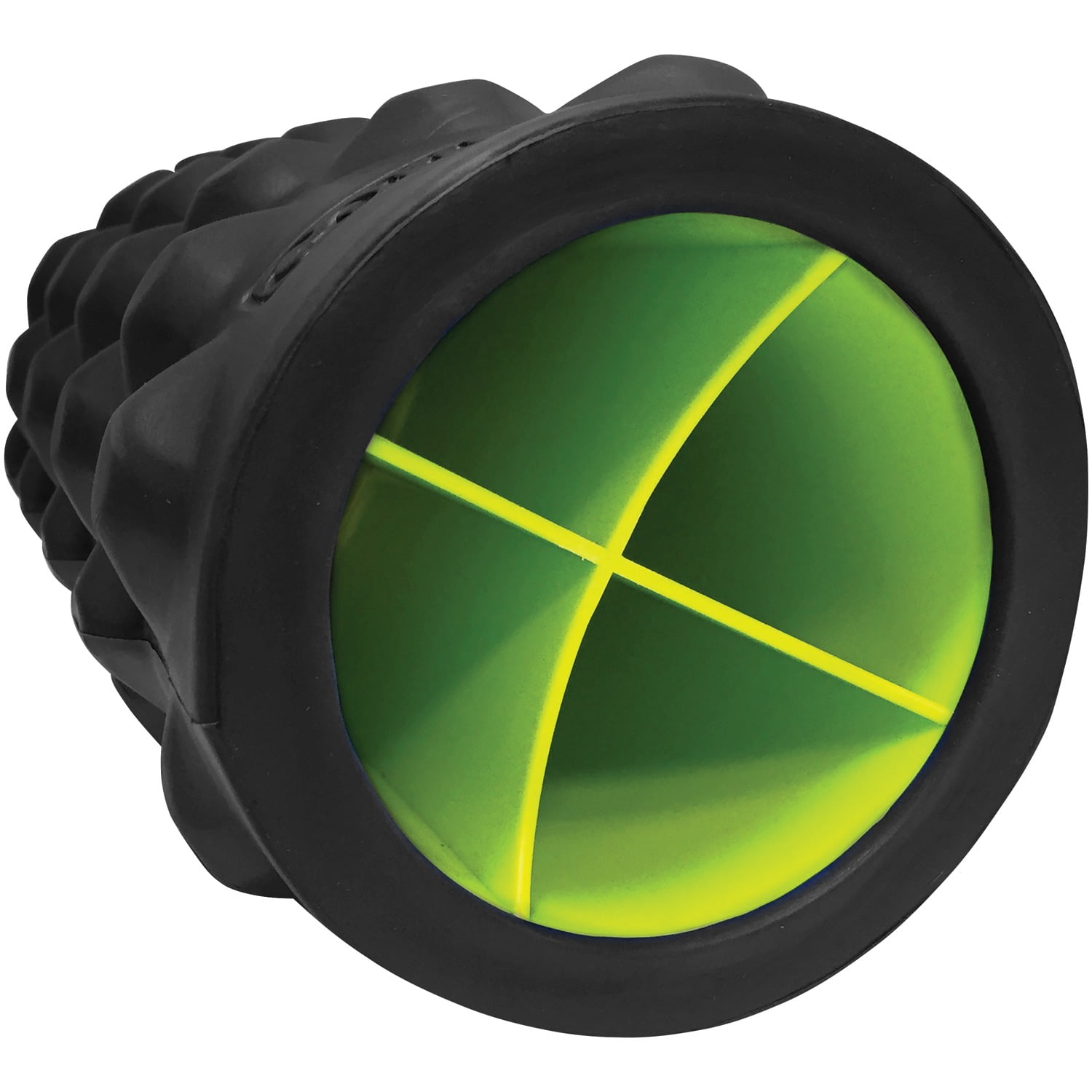 Egg-crate design provides deep-tissue massage and pulverizes trigger-point areas for maximum relief UltraFin® core prevents flexing and breaking of inner core Core diameter: approximately 5.5 in Holds up to 50% more weight than traditional “hollow” foam rollers Firmer, denser rolling for faster breakdown of fascia and lactic acid Exterior pattern allows blood to quickly flood the muscle through foam channels and speed up recovery Dim: 13 in. L x 6 in. dia Includes training manual Black