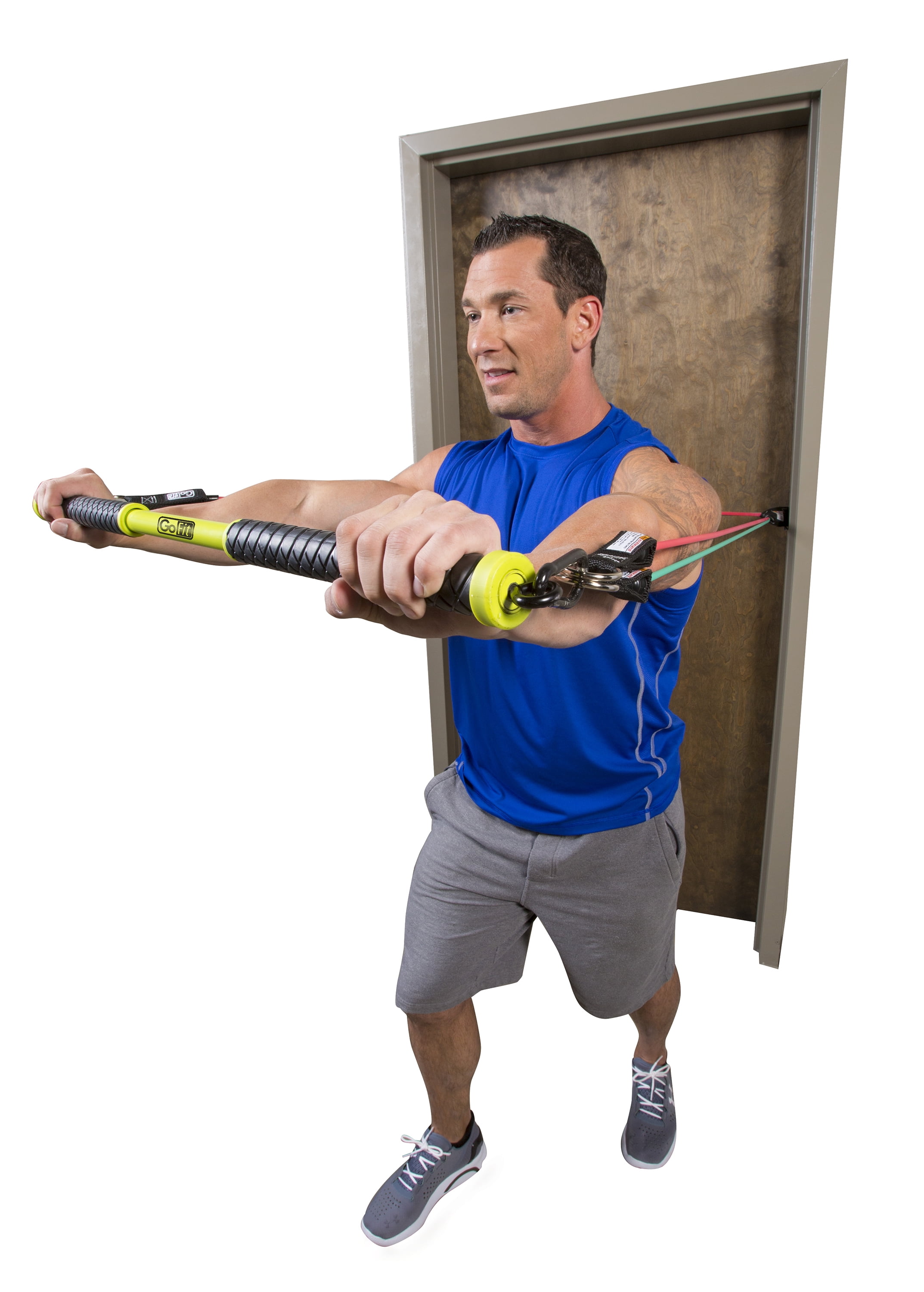 The GoFit Resist-a-Bar is a total-body strength-training tool that works together with GoFit resistance products and accessories. Resist-A-Bar allows you to make the most out of your resistance workout, helping you to tone, sculpt, and strengthen not only your upper body but your overall body. The dual carabiner connector ends allow the user to train with the full range of GoFit Power Tubes – 20lbs through 100lbs. Get multiple resistance levels for a multitude of exercises. Use the GoFit Door Anchor component for an additional range of exercise options.