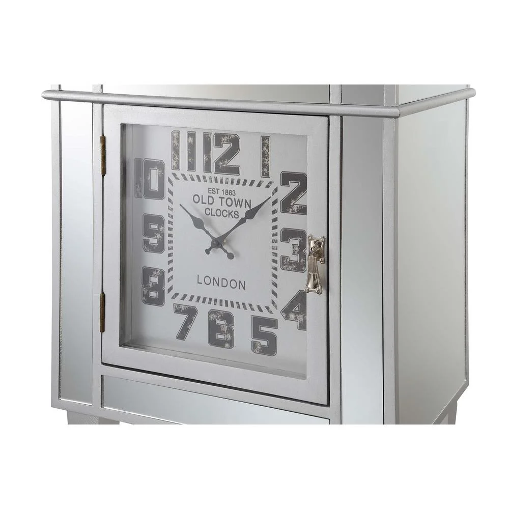 Part of the Gold Coast Collection by Convenience Concepts Features a modern contemporary style Crafted from MDF/Mirror/Non-Lead Based Paint Requires adjusting the clock and 1 AAA battery not included (L) 19 in. x (W) 13 in. x (H) 24 in.