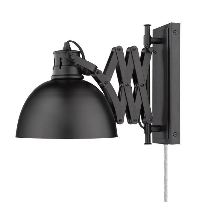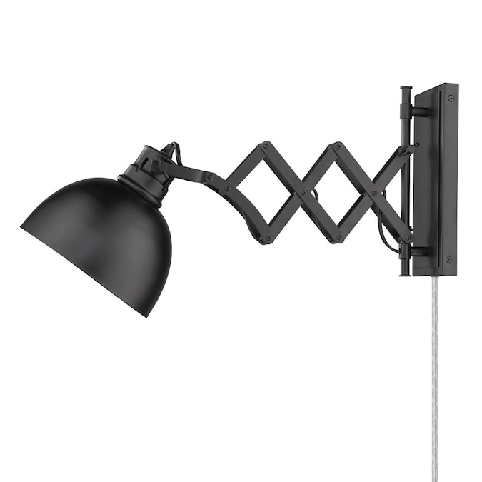 This industrial-inspired design blends old and new. Hawthorn features accordion style arms which can be extended and pivoted to your preferred position. Elongated cut outs on the steel shade are reminiscent of vintage machinery. The wall sconce can be adjusted for style and task lighting. The articulating arms can be locked in place with thumbscrews for style and function. The series offers two installation options: Plug-in or Hardwire. The collection is available in a choice-selection of finish and shade color combinations. The interior of the shade is painted to match the Matte Black exterior.