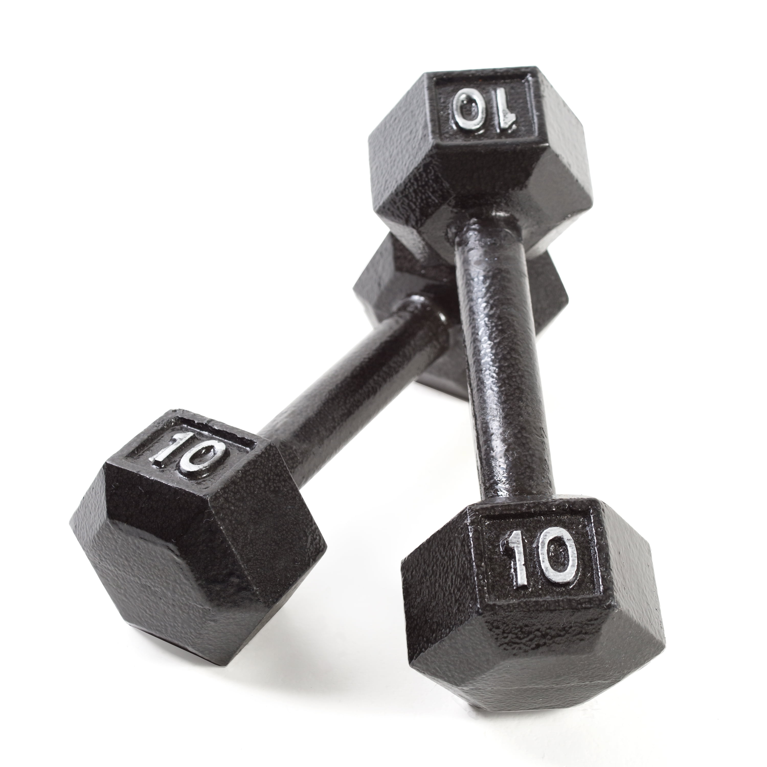 Rack features two levels and is made with a durable metal construction; can hold up to 160 lbs Dumbbells are made of solid cast iron Coated with black enamel with silver painted raised numbers