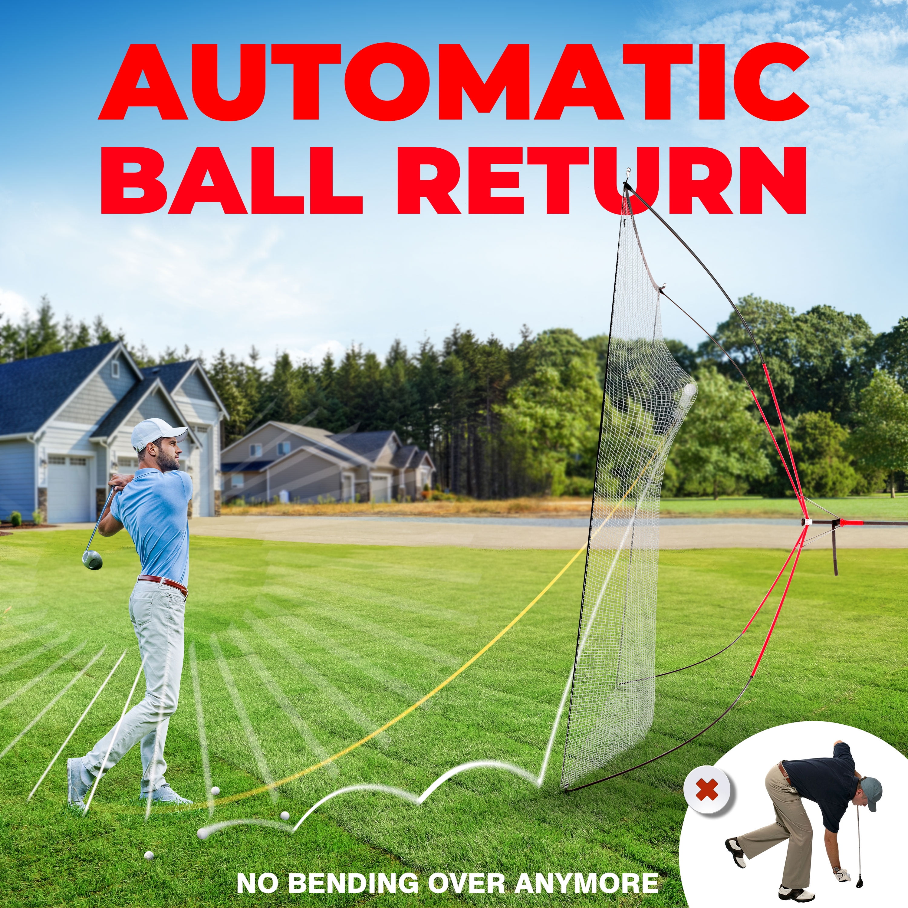 A wonderful choice for both novice and professional players, it comes in handy for improving your golf swing right at home. 10′ Golf Practice Auto Return Net: Quick setup and breakdown, less than 30 secs Better stability, unique impact stopper design Easy angle adjustment, simple telescope adjuster Portable and light weight, take me everywhere 10′ high and 10′ wide Carry bag included The golf hitting net features auto return