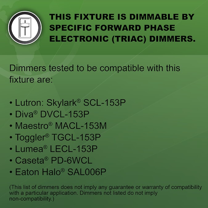 - Dimmable down from 100 percent to 5 percent and works with most existing and new wall triac dimmers