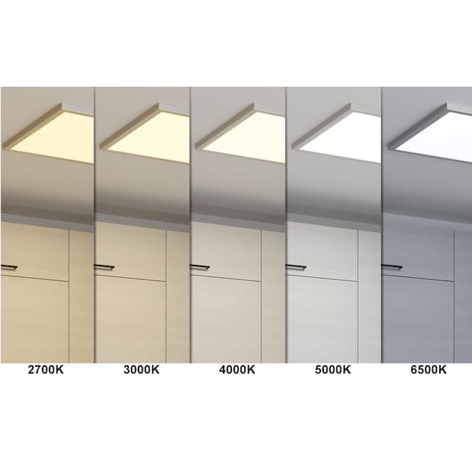 Good Earth Lighting 2ft x 2ft LED flat panel indoor and ceiling light is perfect for any low ceiling area such as laundry rooms, bathrooms, basements and is suitable for most damp locations. This fixture 120-V dim capable and compatible with most forward phase electronic Triac wall dimmers. Enjoy hassle-free LED lighting that never needs replacing with 5 selectable color temperatures ranging from 2700K to 6500K. Select the right light temperature that is suitable for the application or room. Select the right light temperature that is suitable for the application or room. Rated for a LED lamp life of 50,000 hours and will last for 34 years. Made of aluminum construction and a frosted white acrylic diffuser.