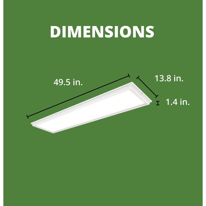 The Fullerton 4-ft x 1-ft LED flat panel indoor ceiling light is perfect for any low ceiling area, such as laundry rooms, bathrooms, and basements and is suitable for most damp locations. This fixture is dimmable and compatible with most forward phase electronic triac wall dimmers. Enjoy hassle-free LED lighting that never needs replacing with a variety of color temperatures to choose from: 2700K Soft White, 3000K Bright White, 4000K Cool White, 5000K Daylight, and 6500K Daylight Deluxe. Select the right light temperature that is suitable for the application or room. Rated for a LED lamp life of 50,000 hours and will last for 34 years. Made of aluminum construction and a frosted white acrylic diffuser.
