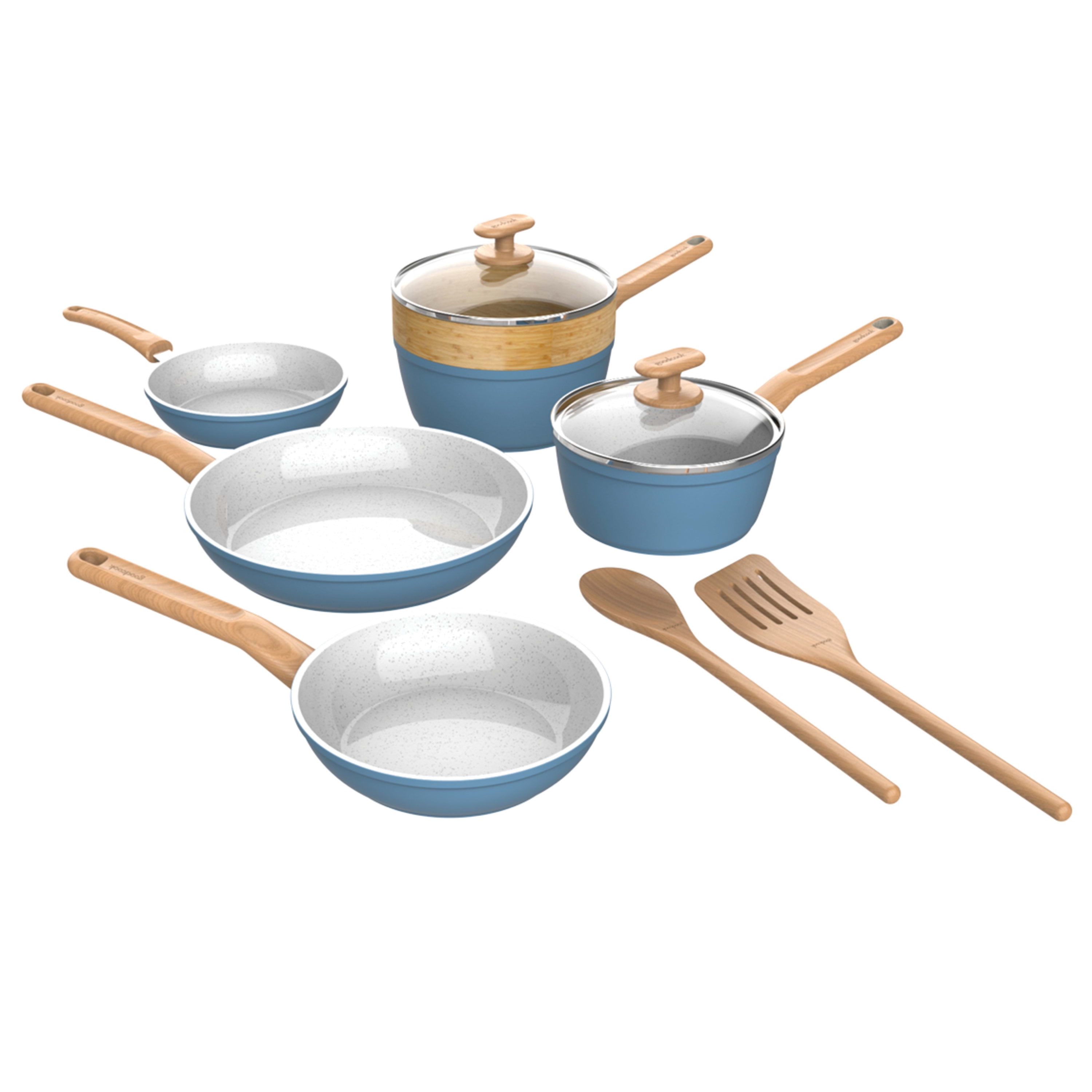 GoodCook 10-Piece Healthy Ceramic Titanium-Infused Cookware Set, Light Blue