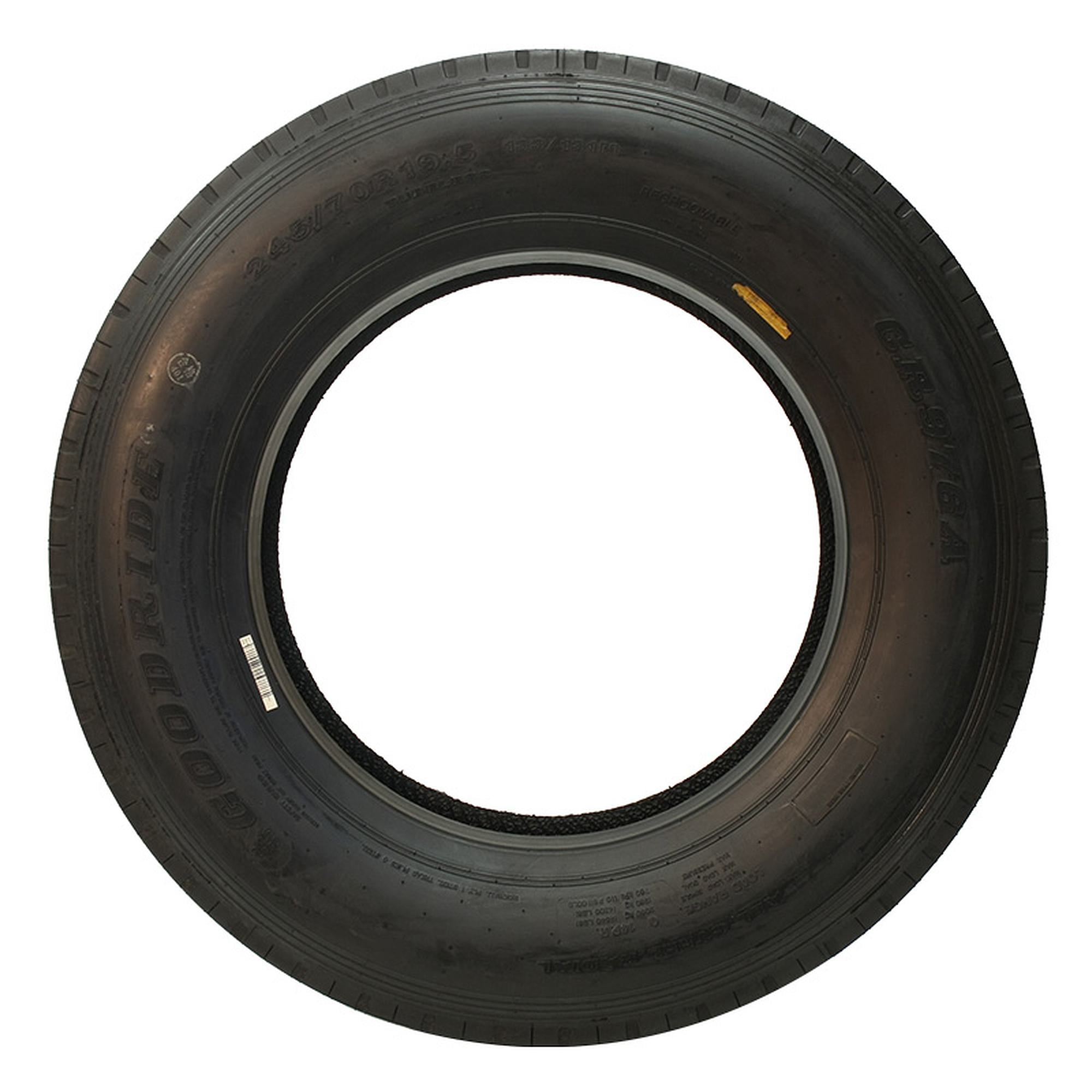 Rim/Wheel is not included with purchase Shallower tread depth helps to resist tread squirm and irregular wear forces for exceptionally long mileage Stone ejector platforms prevent stones from lodging in grooves and drilling into belts Five ribs with four wide, straight grooves for precise handling and outstanding traction Designed for use on the steer and trailer axle in long haul applications Size: 255/70R22.5 Load Range: H Product May Vary From Picture Wheel/Rim Not Included